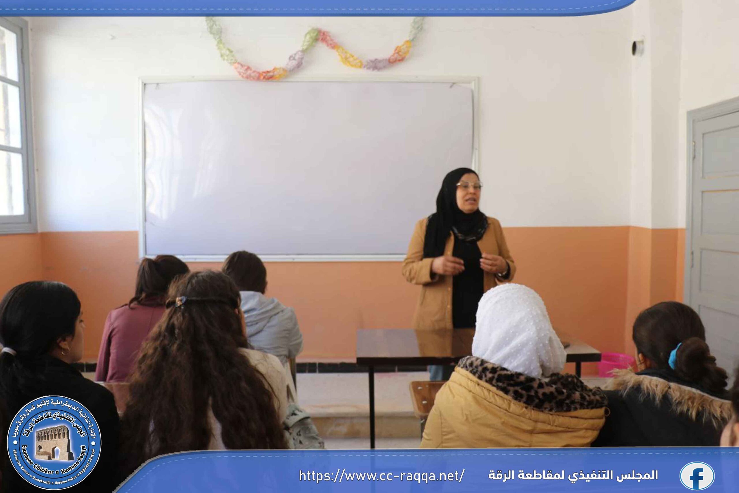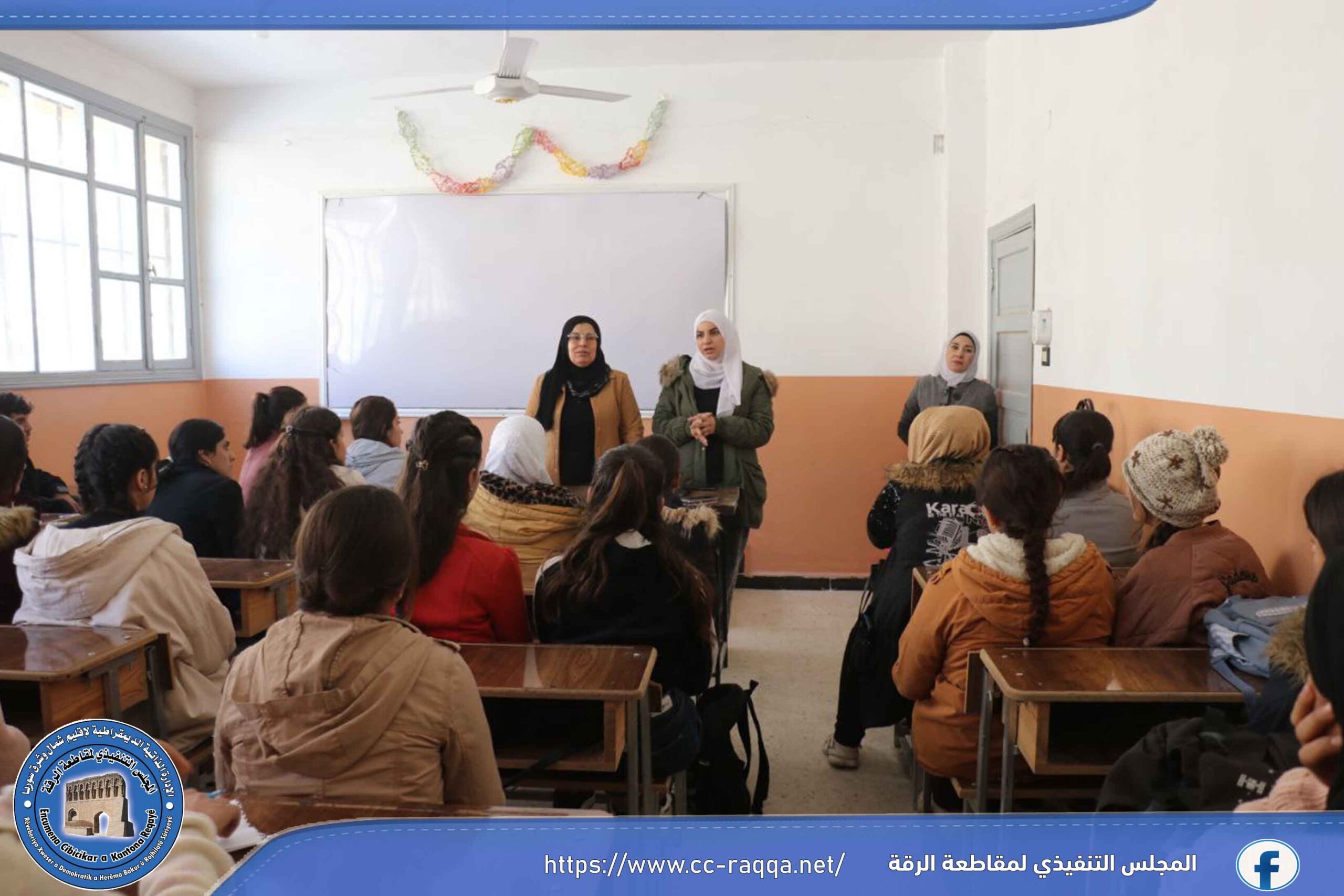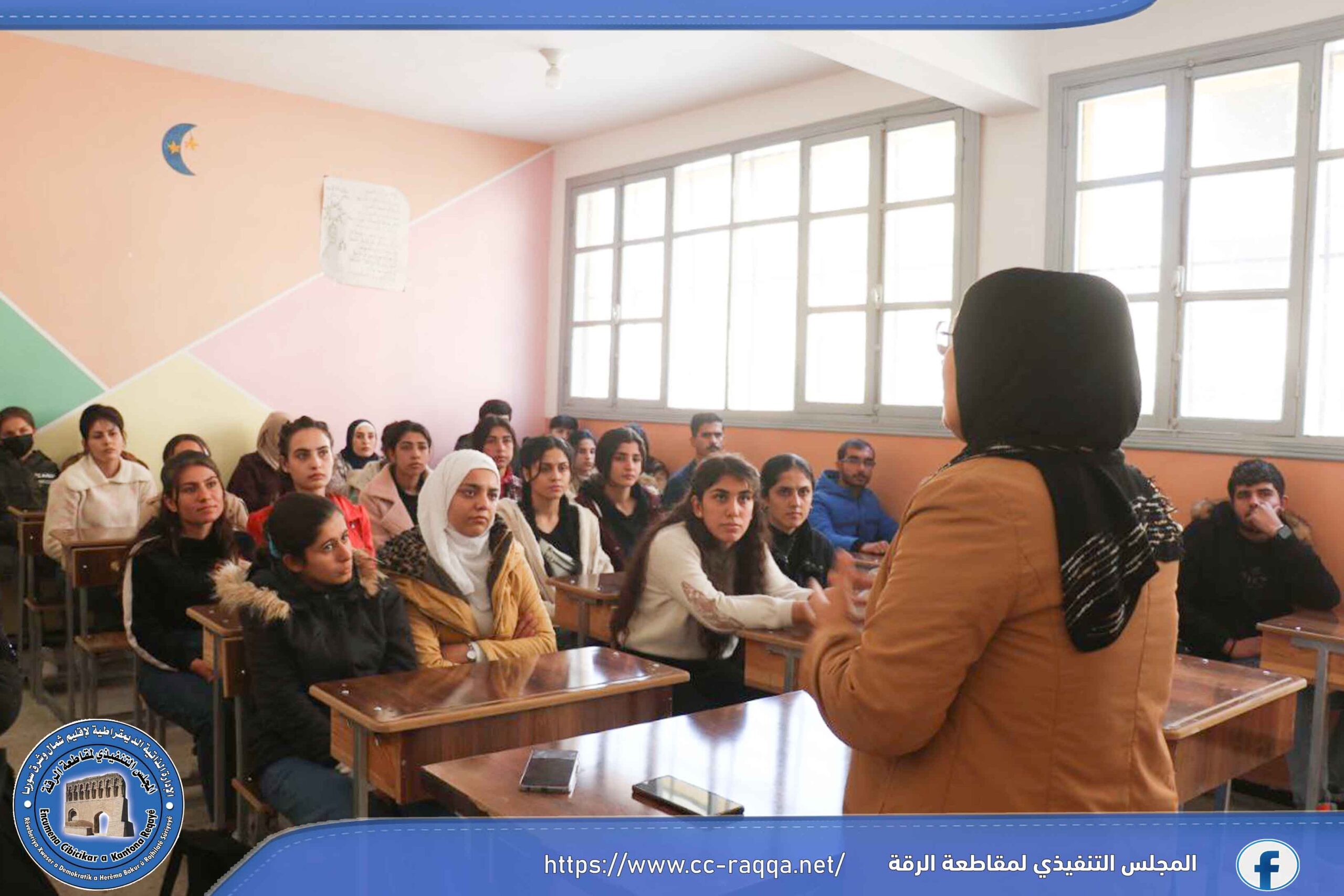 استكمالاً للحملة القائمة من قبل التجمعات والتنظيمات النسوية، وبالتزامن مع اليوم العالمي لمناهضة العـ.ــنف ضـ.ــد المرأة، نظمت كل من هيئة التربية والتعليم في مقاطعة الرقة ومجلس تجمع نساء زنوبيا صباح اليوم 20 تشرين الثاني، محاضرة بعنوان (مناهــ.ــضة العـ.ــنف ضـ.ــد المـرأة)، وذلك في مدرسة “شرفين رقة النموذجية” لطلاب البكالوريا بفرعيها العلمي والأدبي.