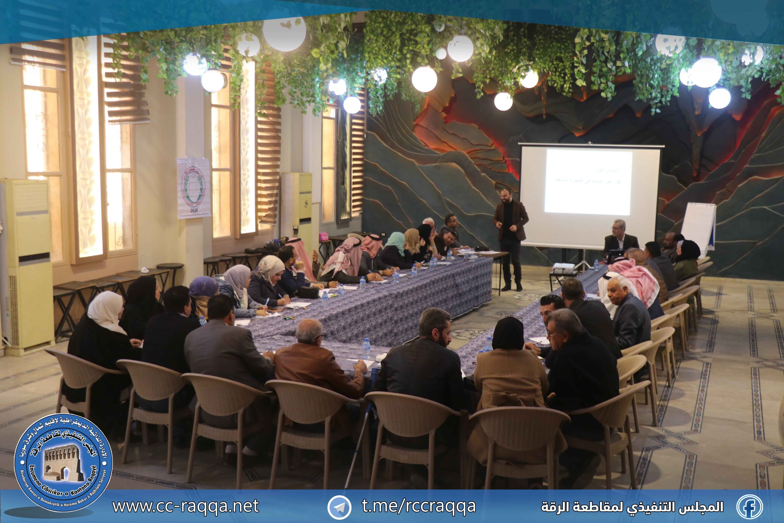 نظمت مجموعة العمل الوطني وبالتعاون مع تنظيمات المجتمع الديمقراطي في الرقة صباح اليوم 23 تشرين الثاني، الورشة التدريبية الثانية والتي حملت عنوان (مهارات التفاوض)، بحضور 35 شخصية بارزة من شيوخ ووجهاء العشائر ومثقفين وإداريين، وممثلين عن المؤسسات المدينة.