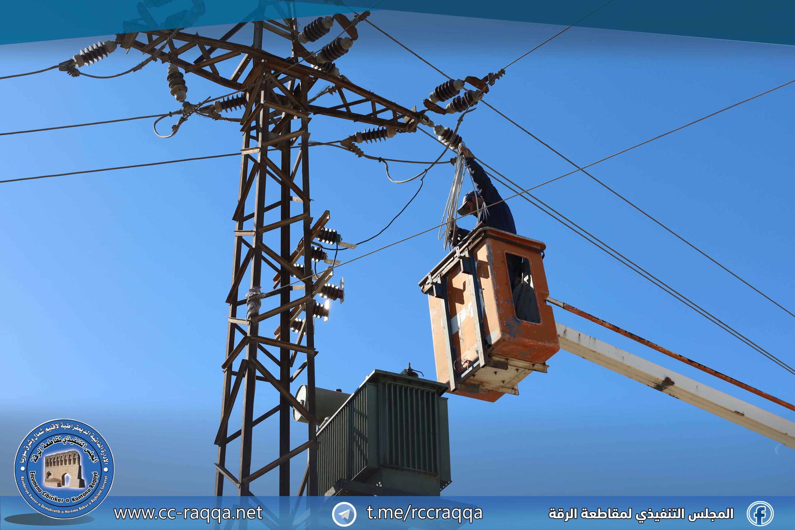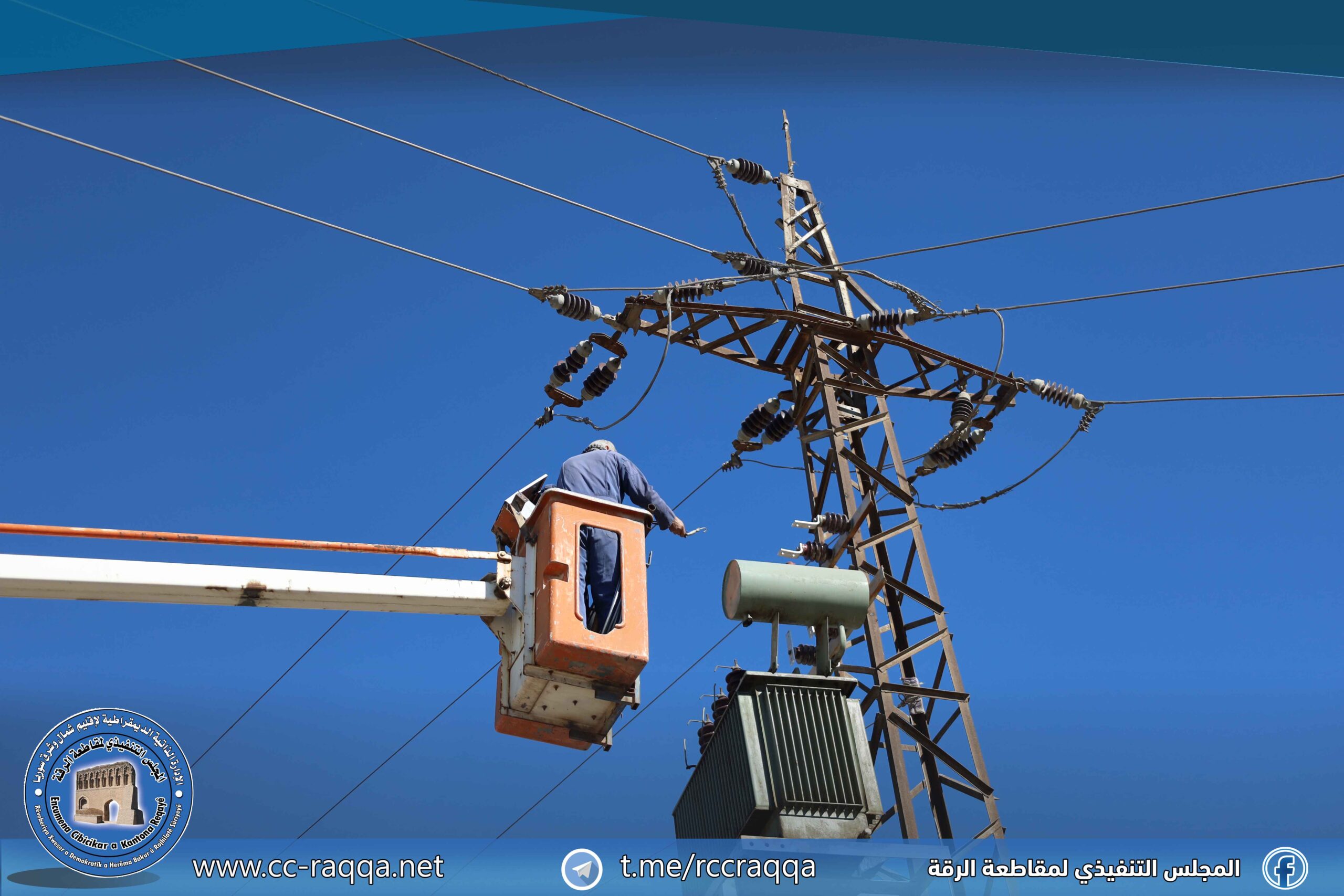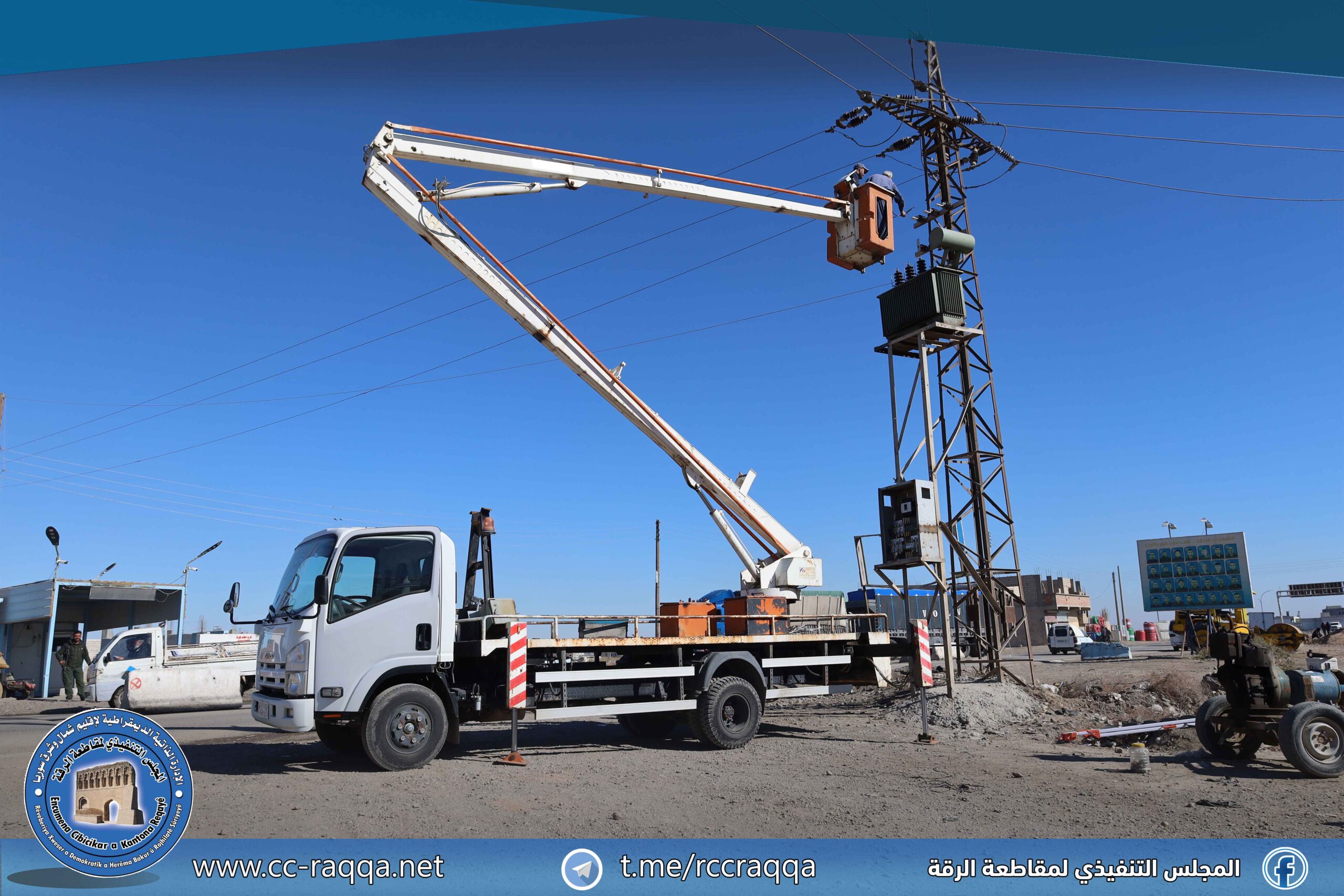 عملت ورشات متوسط المدينة التابعة لهيئة الطاقة في مقاطعة الرقة صباح اليوم 25 تشرين الثاني، على تركيب لوحة توتر منخفض وقاطع 800 أمبير وقواعد بونيات مؤلفة من 3 مخارج، بالإضافة لتركيب كبل رئيسي توتر منخفض مغذي من محولة 400 كيلو فولط أمبير للوحة، ضمن مركز منطقة التوسع نهاية شارع حي المشلب ليتم تغذية الحي بالتيار الكهربائي.