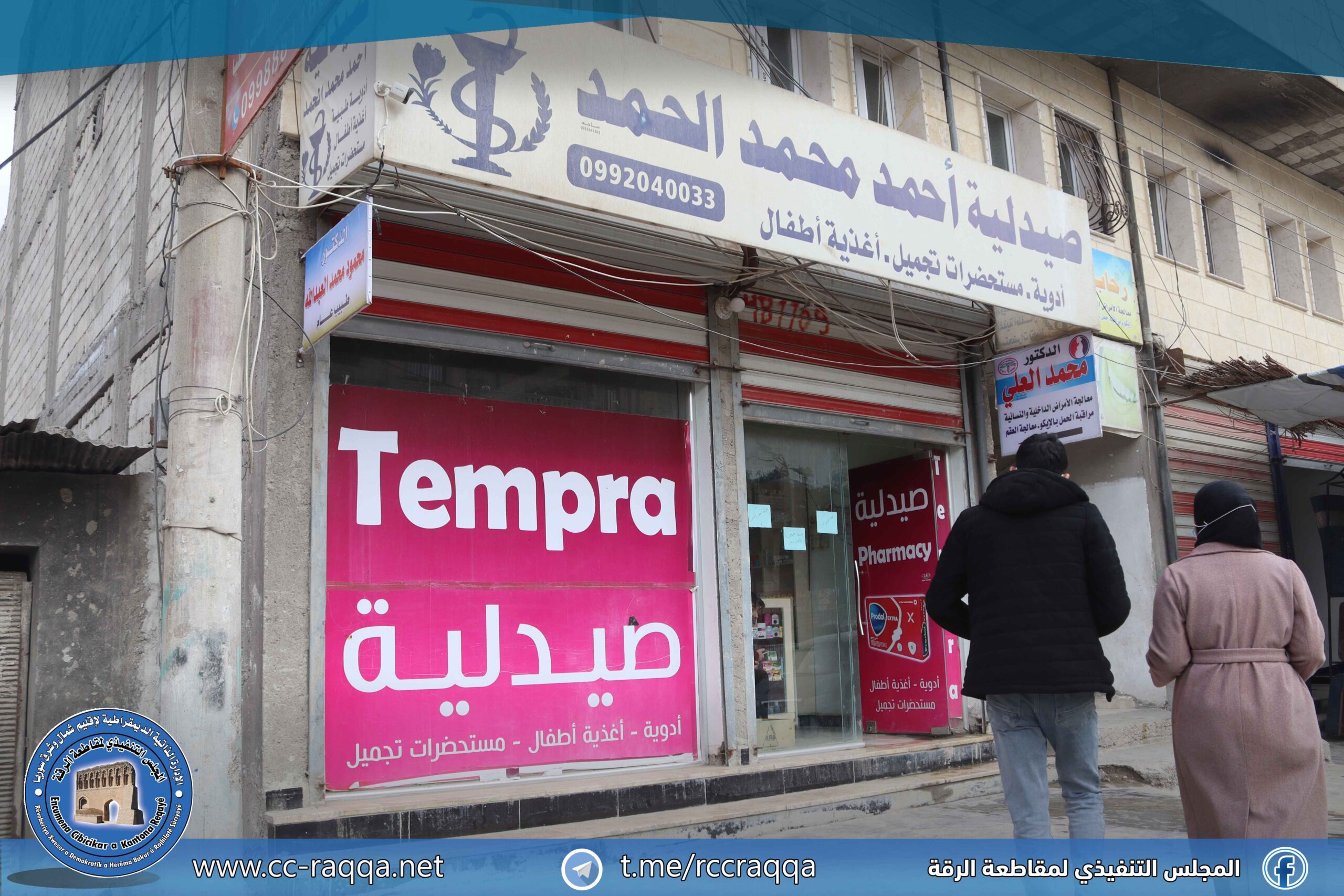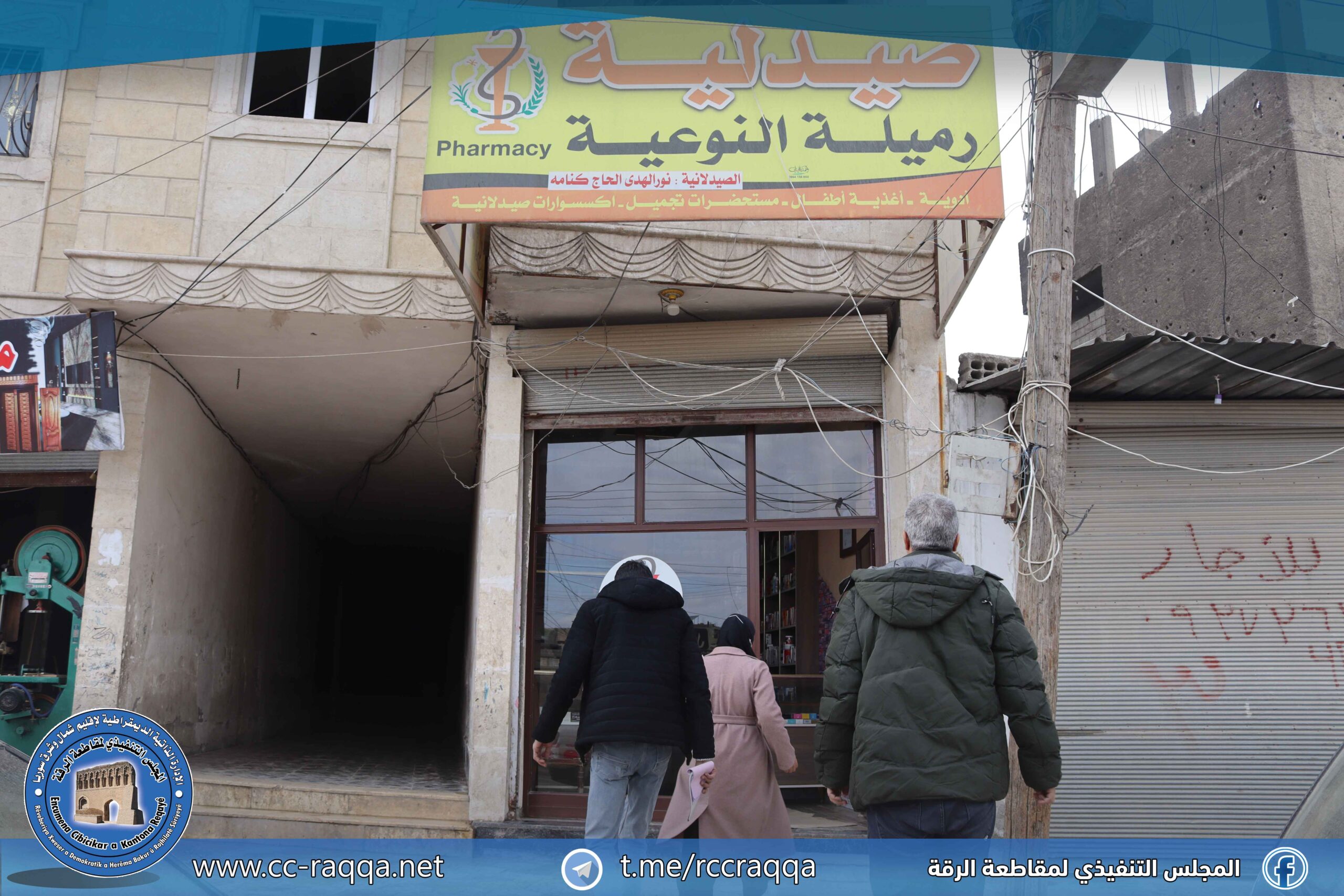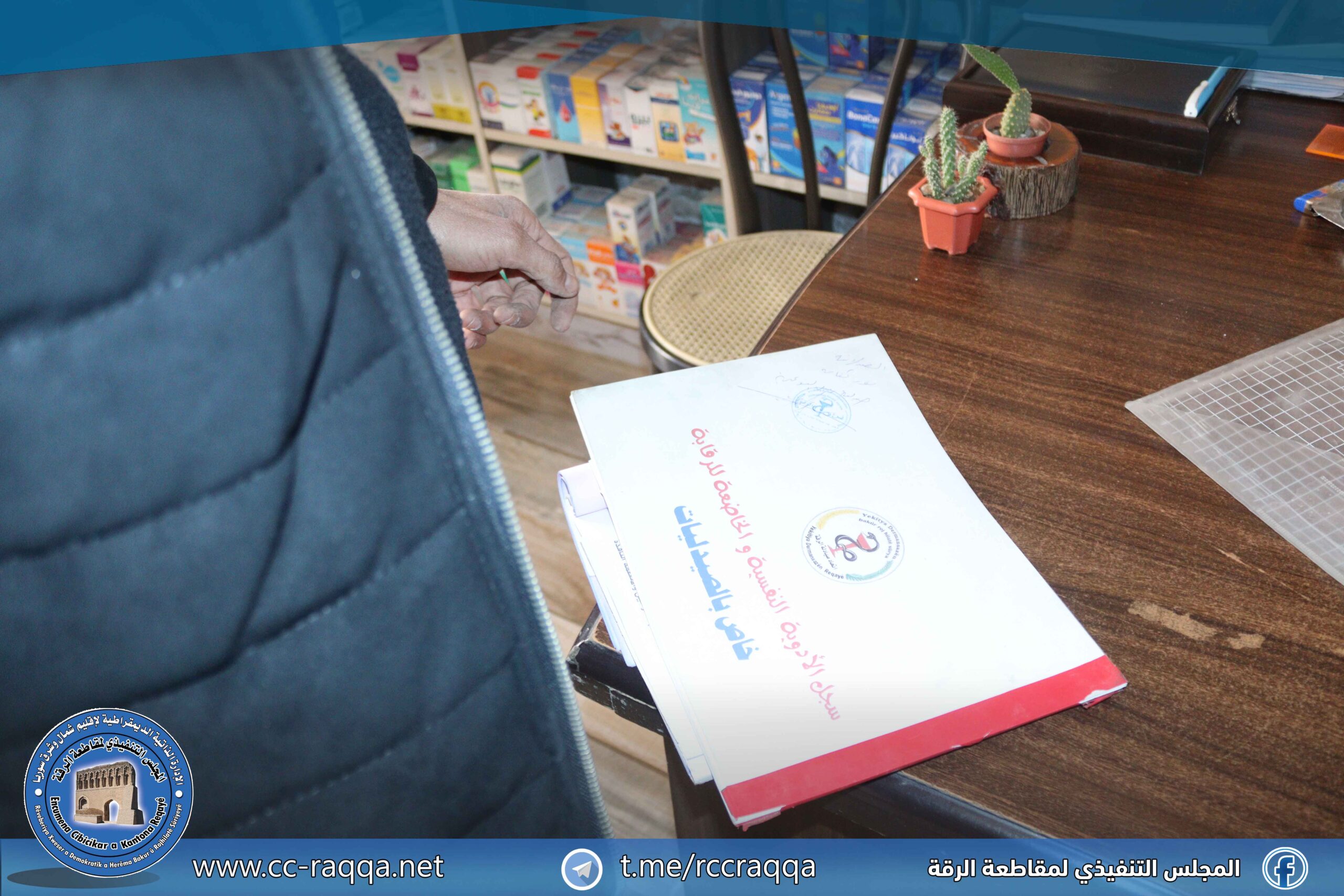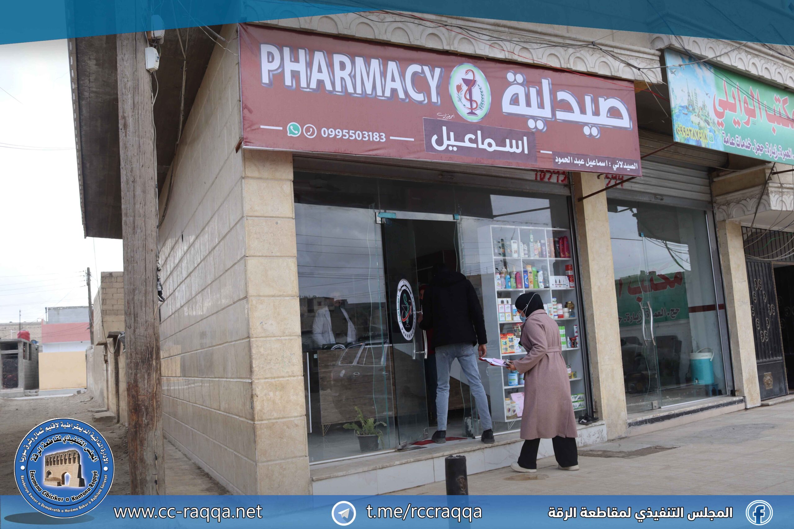 أجرى مكتب السجل والرقابة الدوائية التابع لهيئة الصحة في مقاطعة الرقة وبالتعاون مع اتحاد الصيدلة التابع لتنظيمات المجتمع الديمقراطي صباح اليوم 26 تشرين الثاني، جولة رقابية شملت عدداً من الصيدليات الطبية الموجودة في مدينة الرقة.