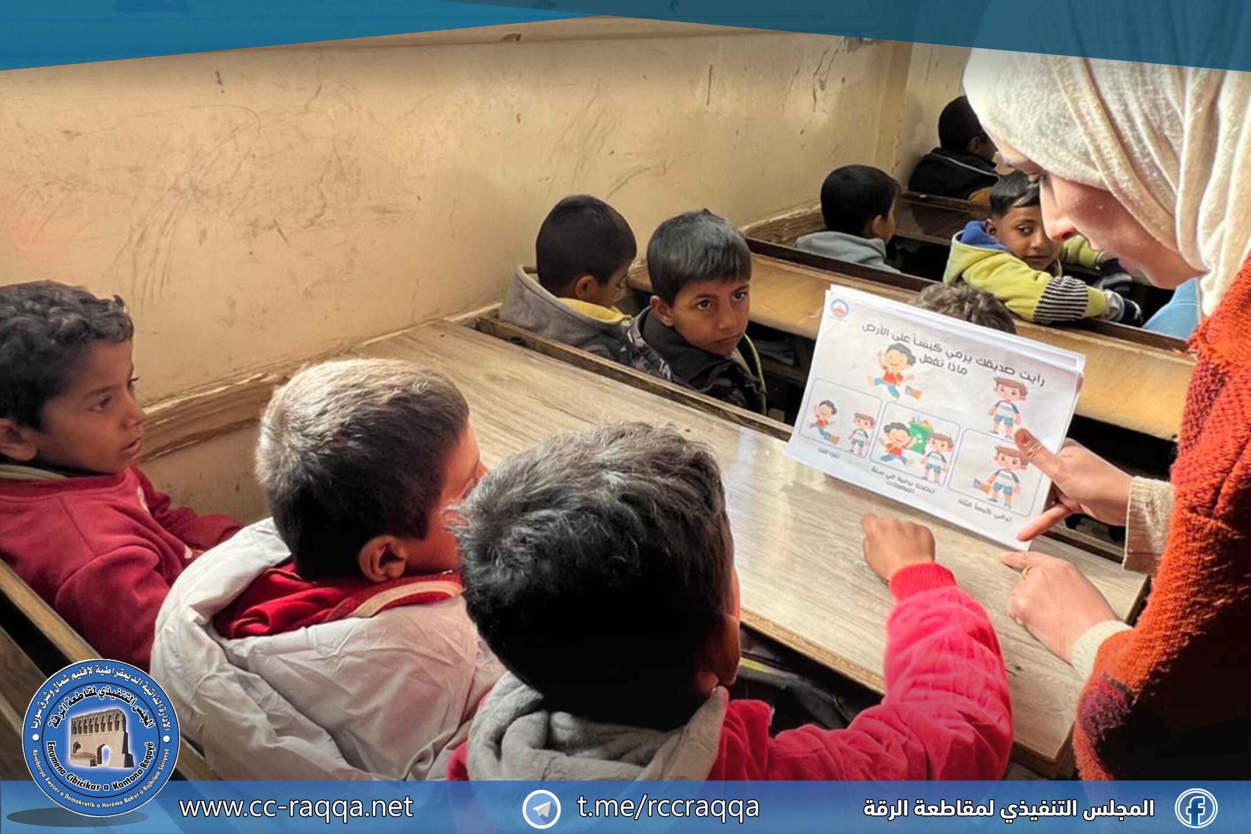 نظمت دائرة التوعية والتثقيف التابعة لهيئة البيئة في مقاطعة الرقة صباح اليوم 27 تشرين الثاني، زيارة إلى مدرسة الصكورة بريف الرقة الغربي، حيث تم تنفيذ مجموعة من الأنشطة التوعوية بهدف تعزيز الوعي البيئي لدى الطلاب.