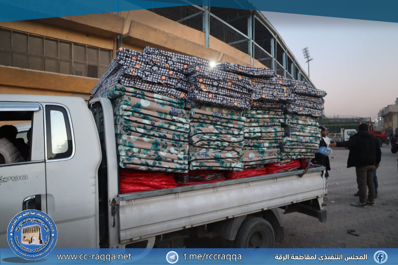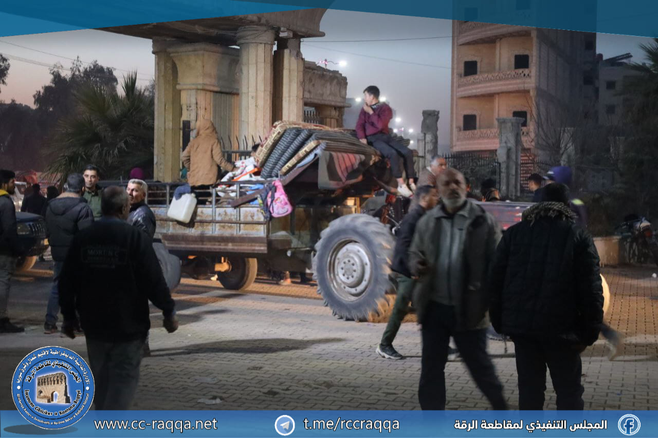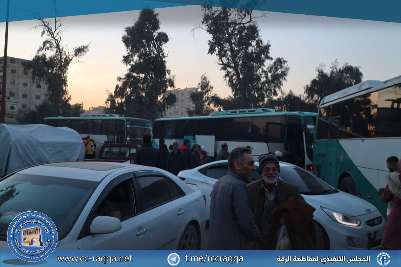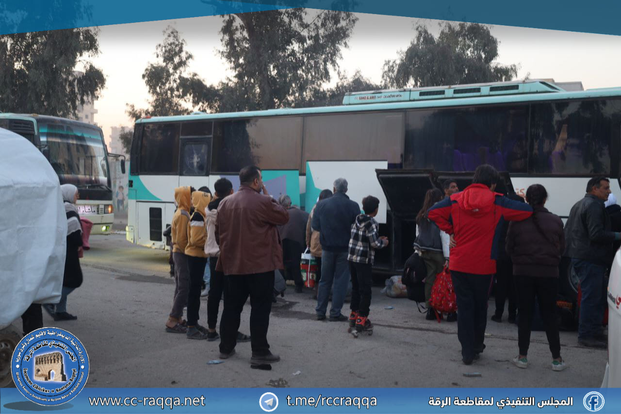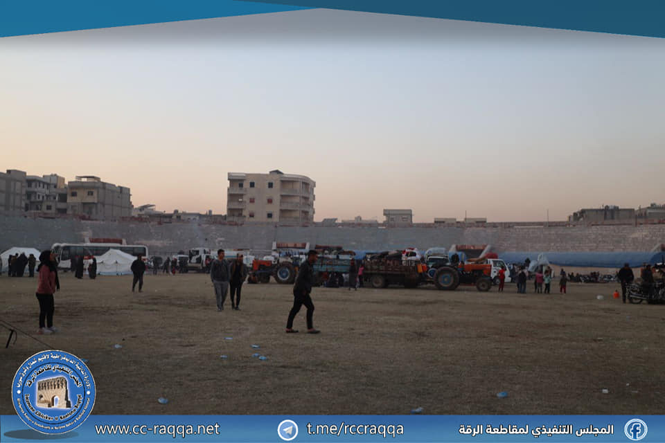 جاء ذلك في ظل توافد قوافل جديدة مساء اليوم إلى مدينة الرقة واستقبالهم ضمن الملعب وعدد من مدارس المدينة.