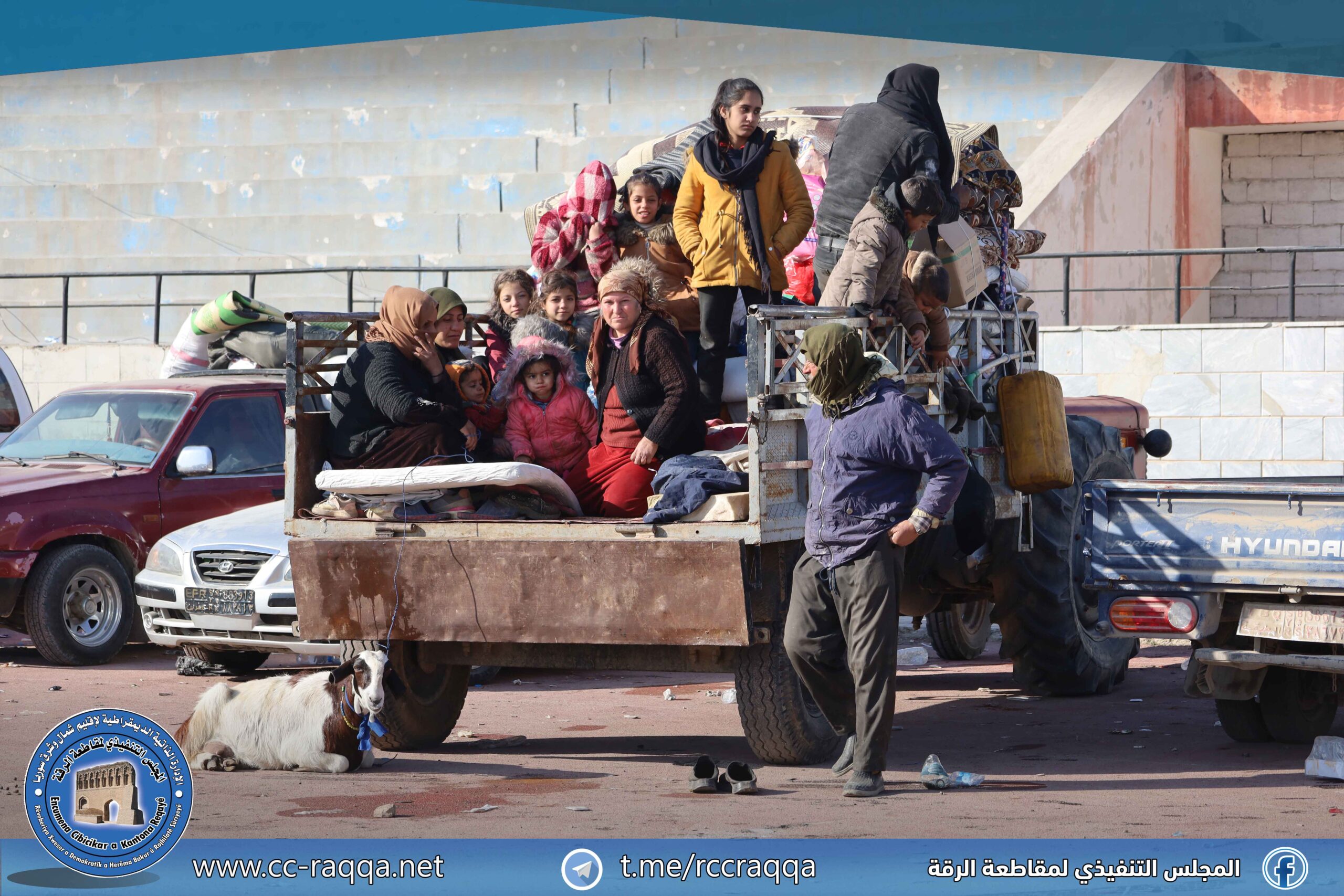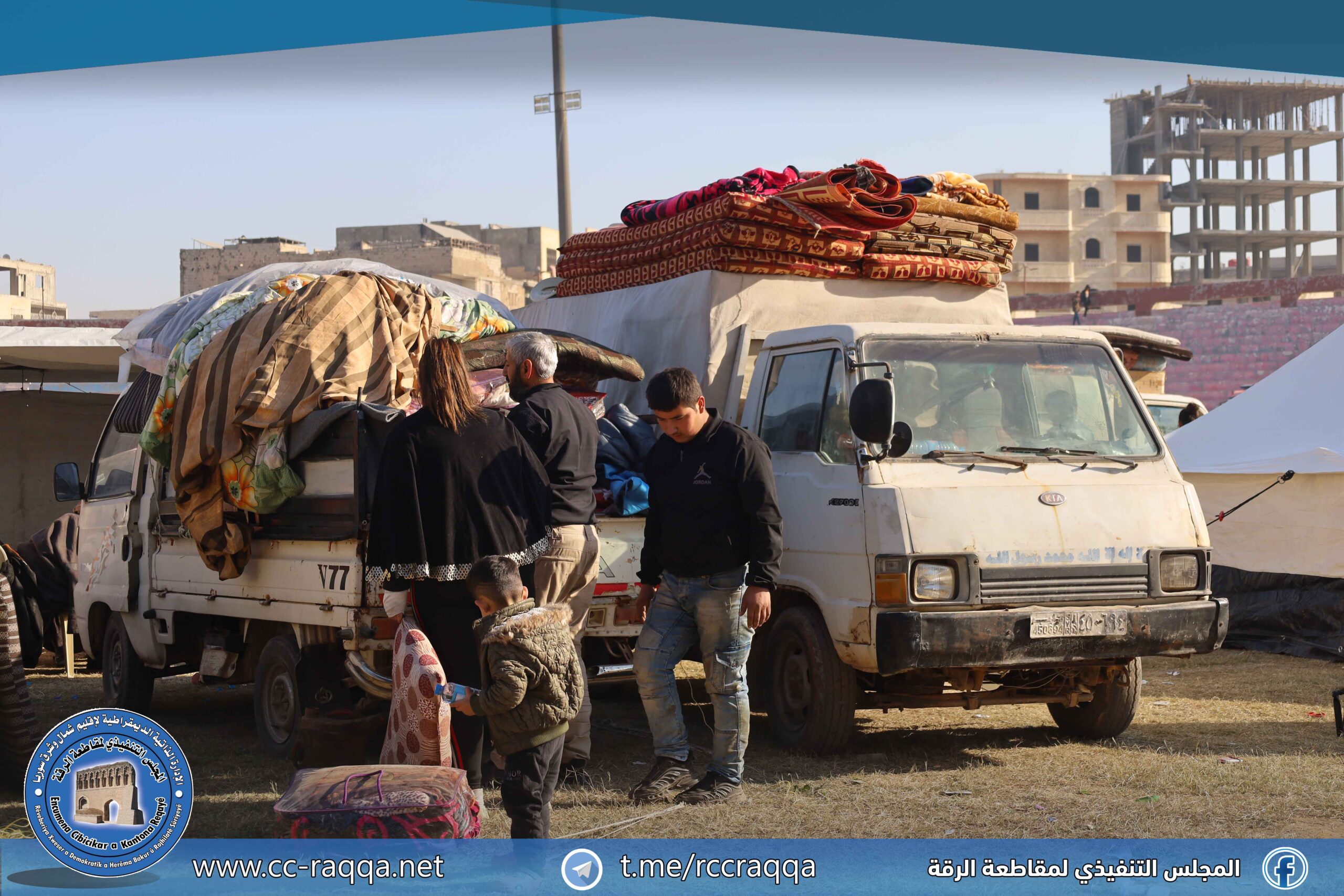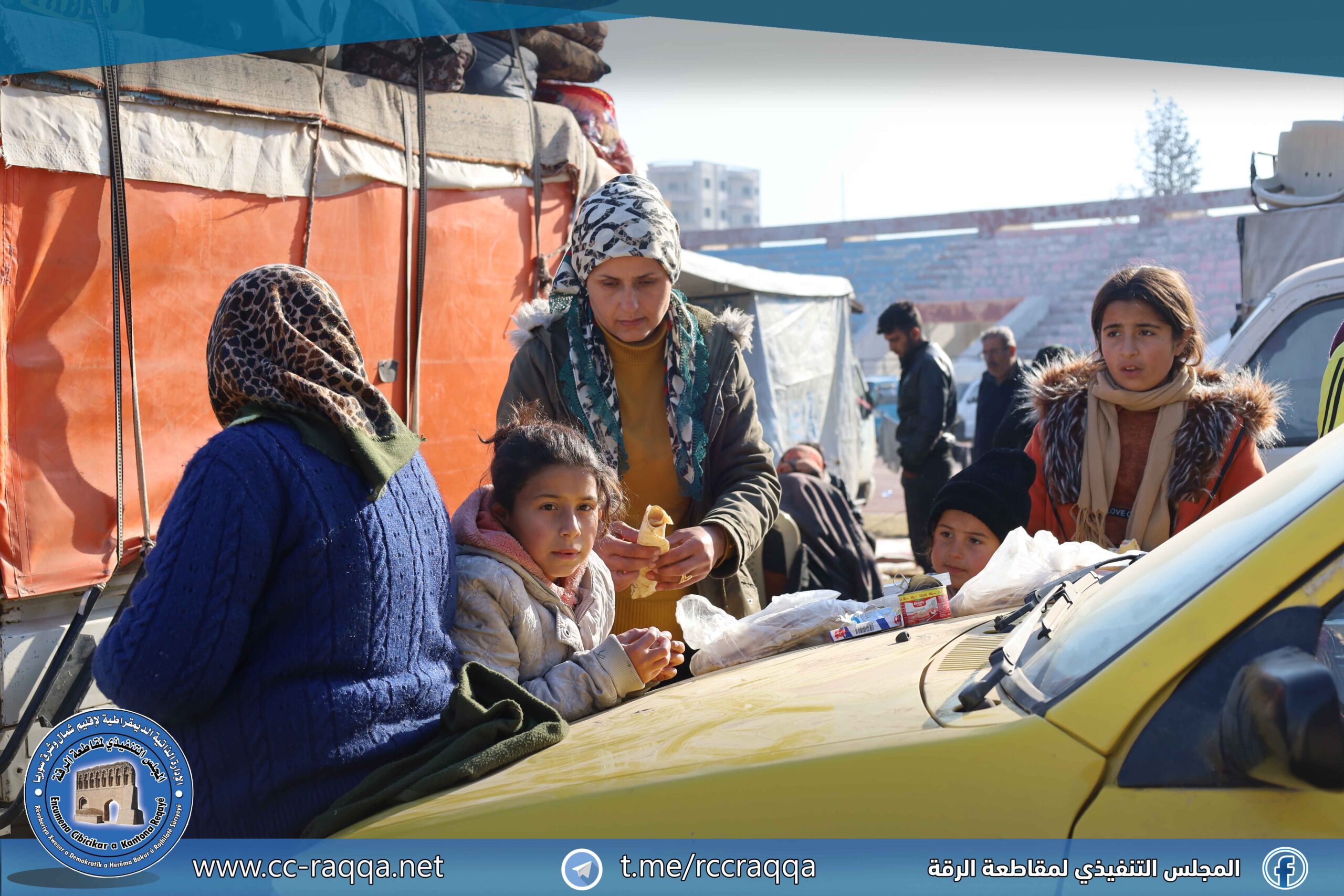 لليوم الثالث على التوالي، جانب من استمرار توافد المهـ.ـجرين قسـ.ـراً من مناطق الشهباء وعفرين إلى مقاطعة الرقة.