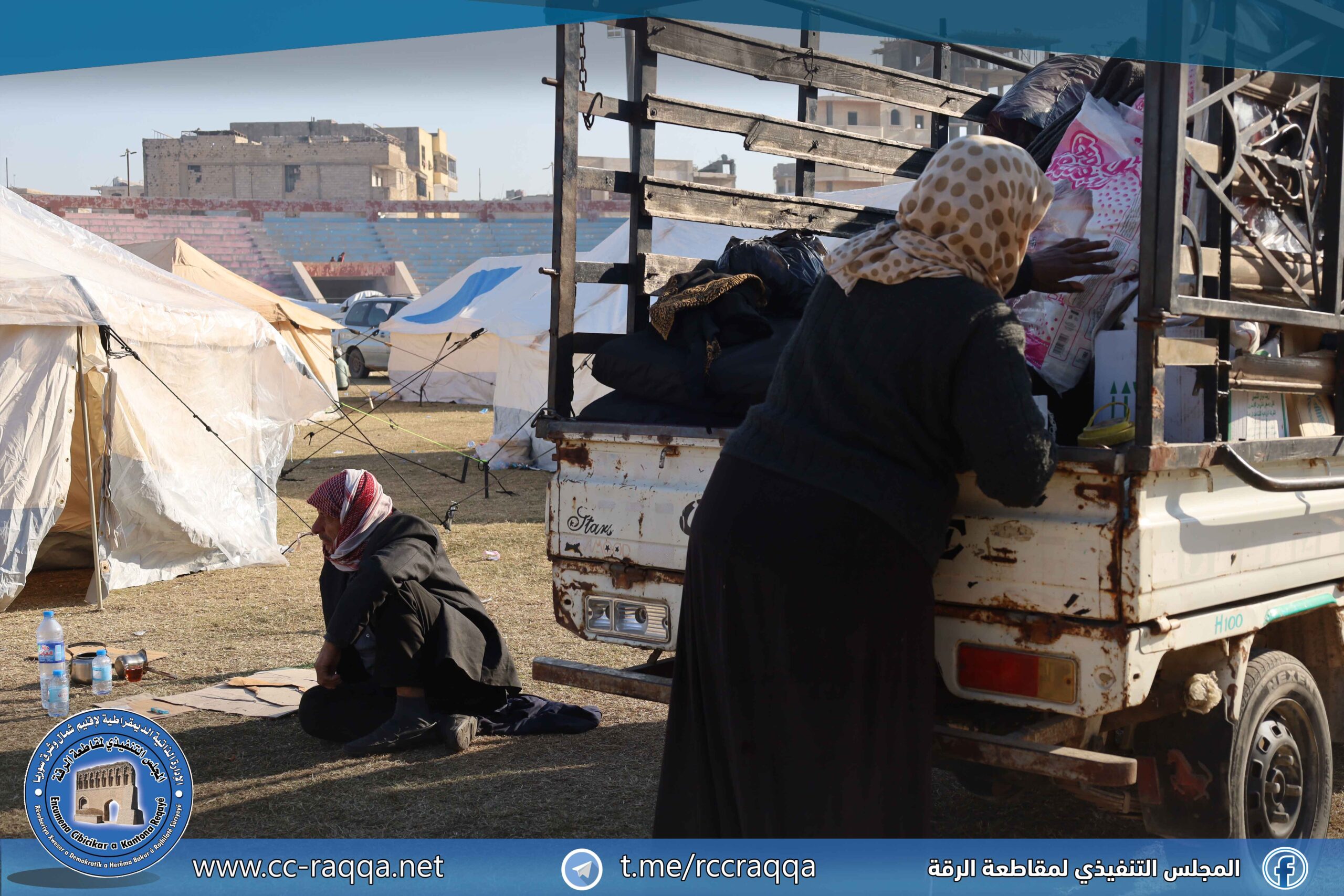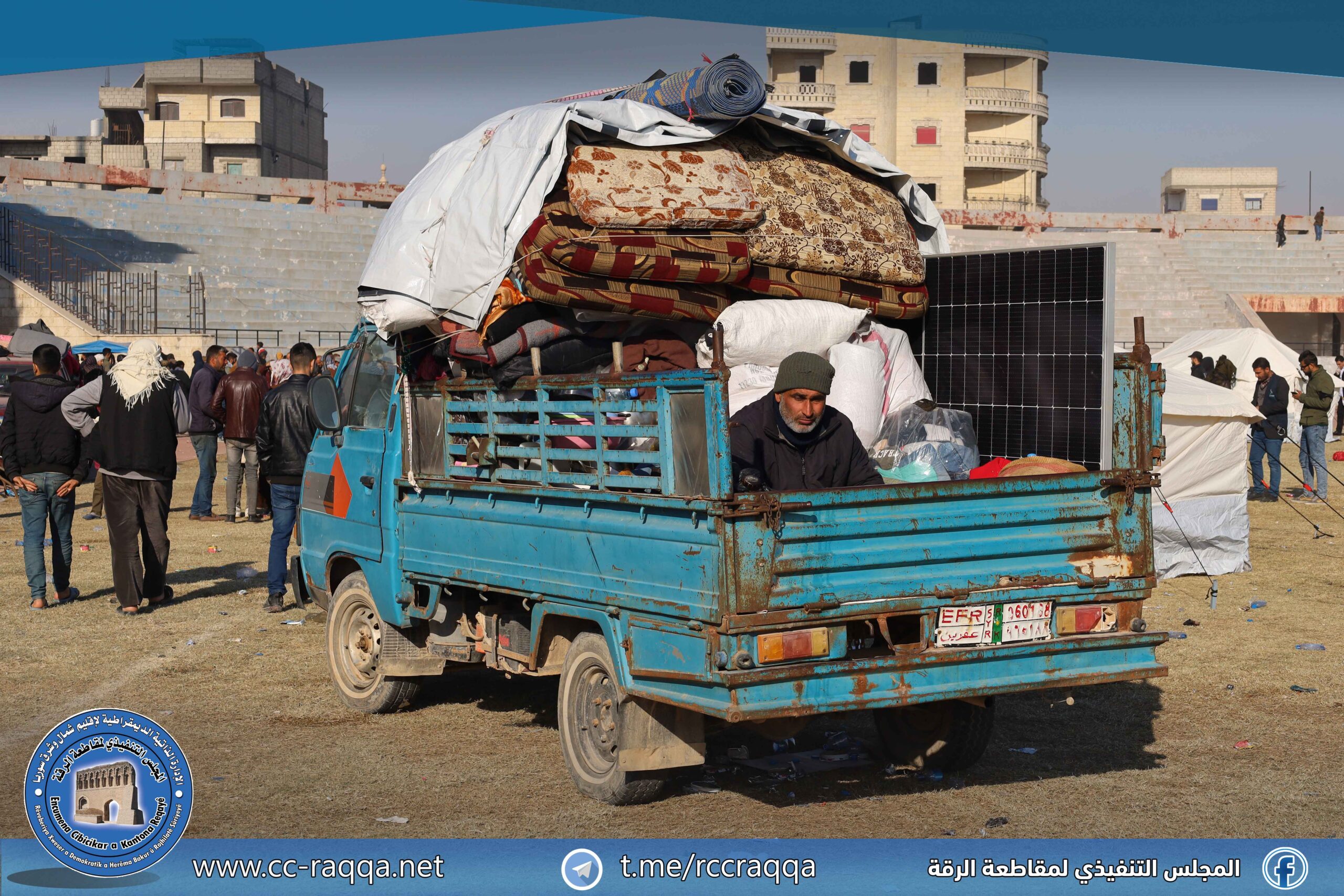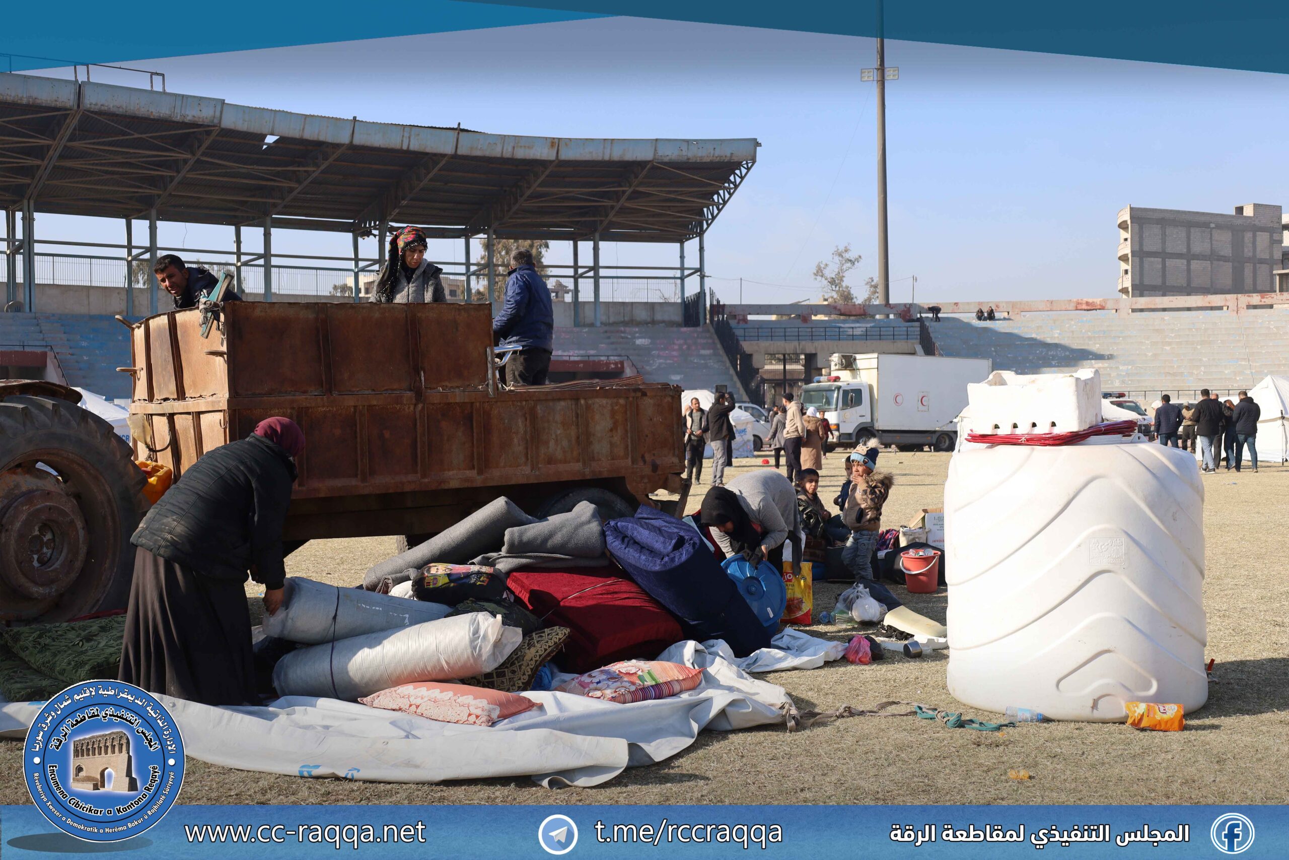 لليوم الثالث على التوالي، جانب من استمرار توافد المهـ.ـجرين قسـ.ـراً من مناطق الشهباء وعفرين إلى مقاطعة الرقة.