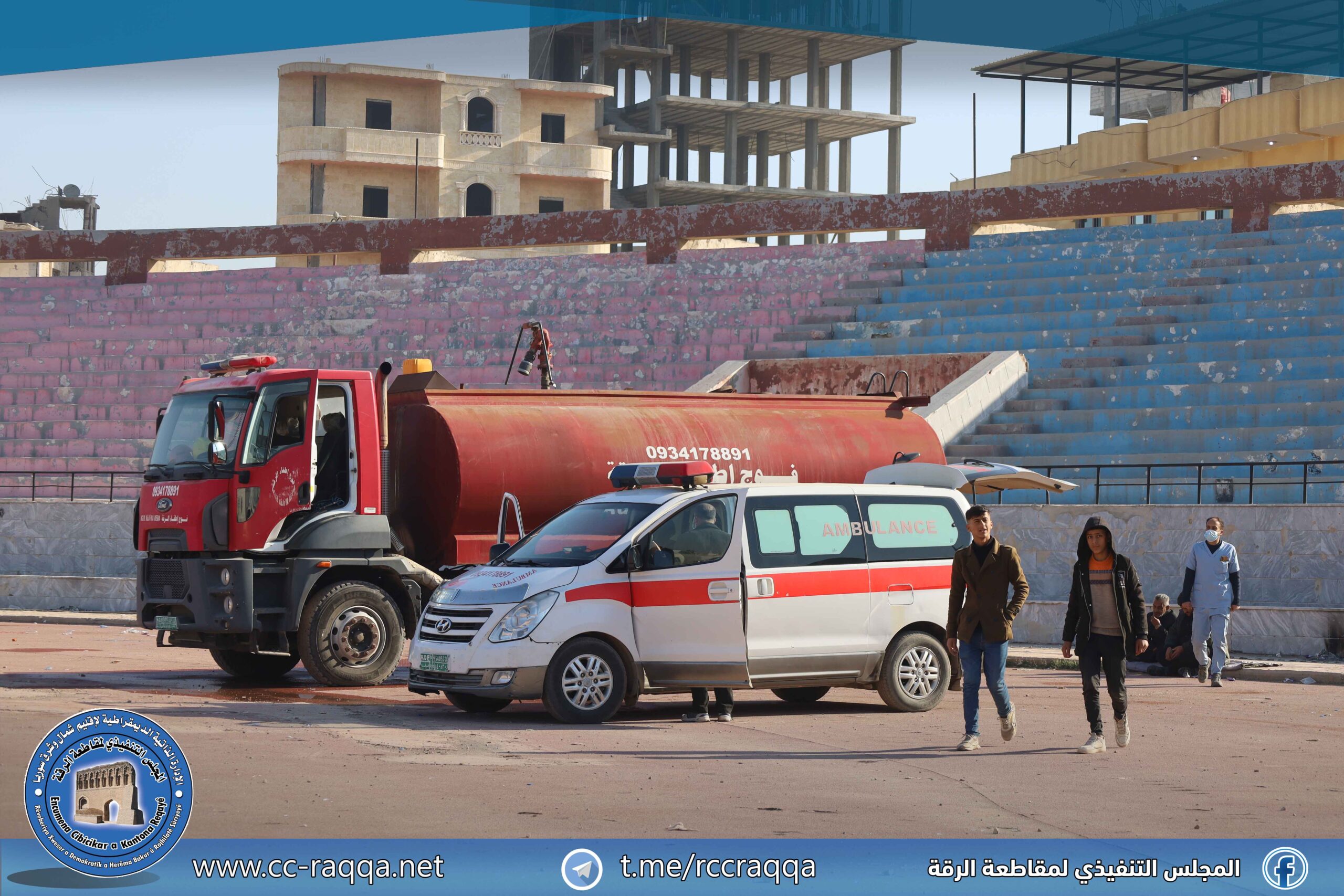 وتقديم الرعاية الطبية والمساعدات الإنسانية مستمرة على مدار الساعة في مركز الاستقبال الرئيسي في الملعب البلدي.