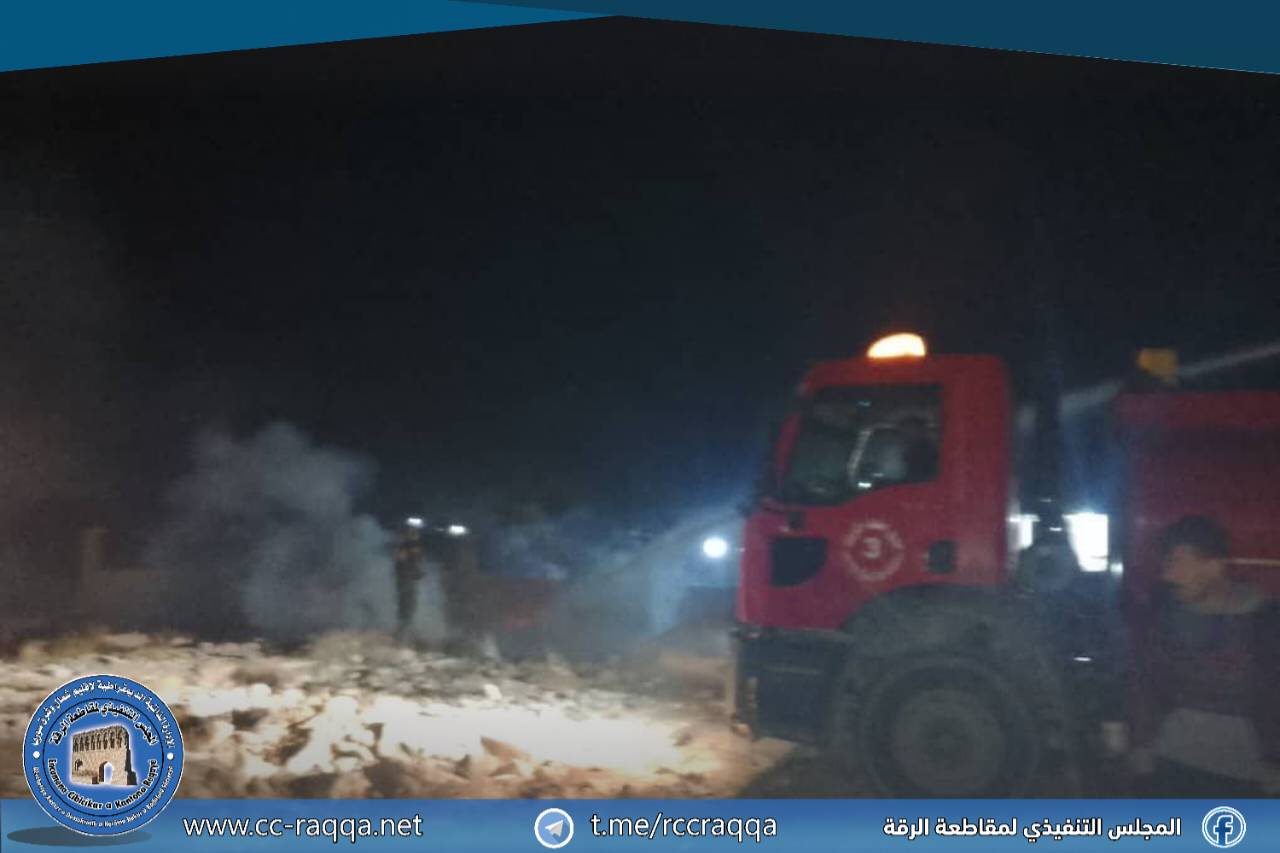 تمكنت مفرزة الإطفاء التابعة لفريق الاستجابة الأولية مساء اليوم 19 كانون الأول، من السيطرة على حريق اندلع في خيمة تقع بجانب سوق الحديد في مدينة الرقة، حيث أكد الفريق أن أسباب الحريق تعود إلى عمل مفتعل.