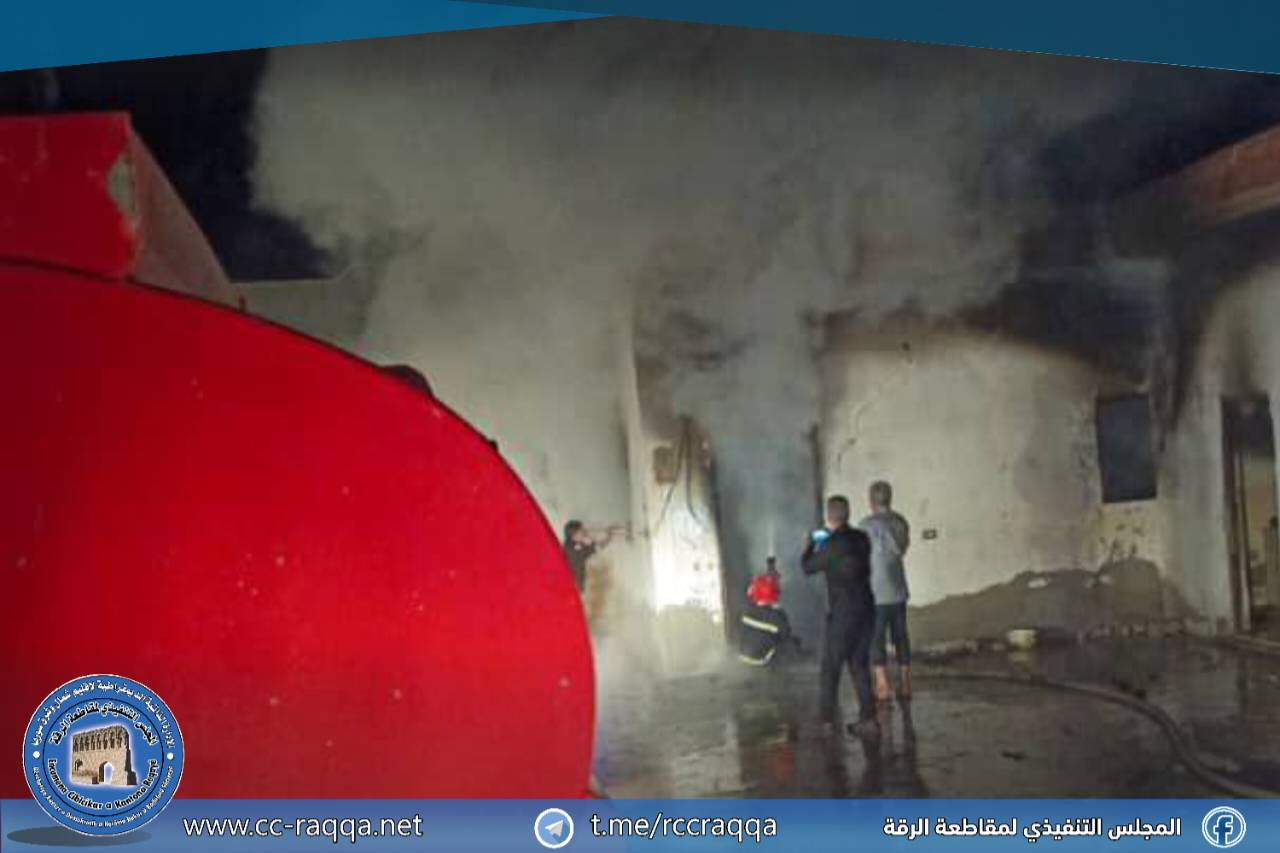 تمكنت مفرزتا إطفاء الكرامة والمدينة، التابعتان لفريق الاستجابة الأولية في المجلس التنفيذي لمقاطعة الرقة، 14 نيسان 2025 من إخماد حريق اندلع مساء الاثنين في منزلين بمنطقة الأحوس في الريف الشرقي.