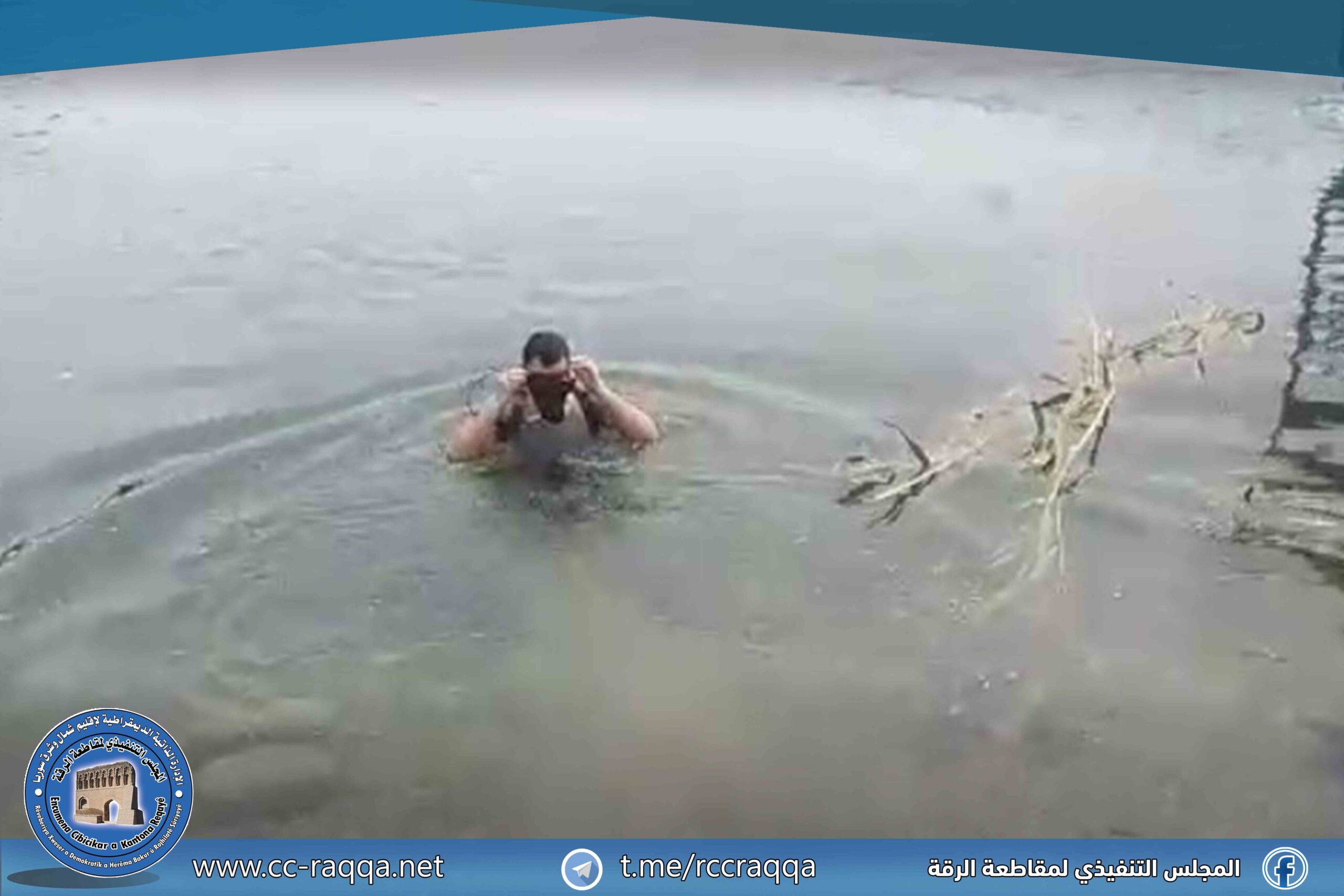 فريق الغوص في الرقة ينتشل جــ..ـثــ..ـة طفل من الجسر القديم