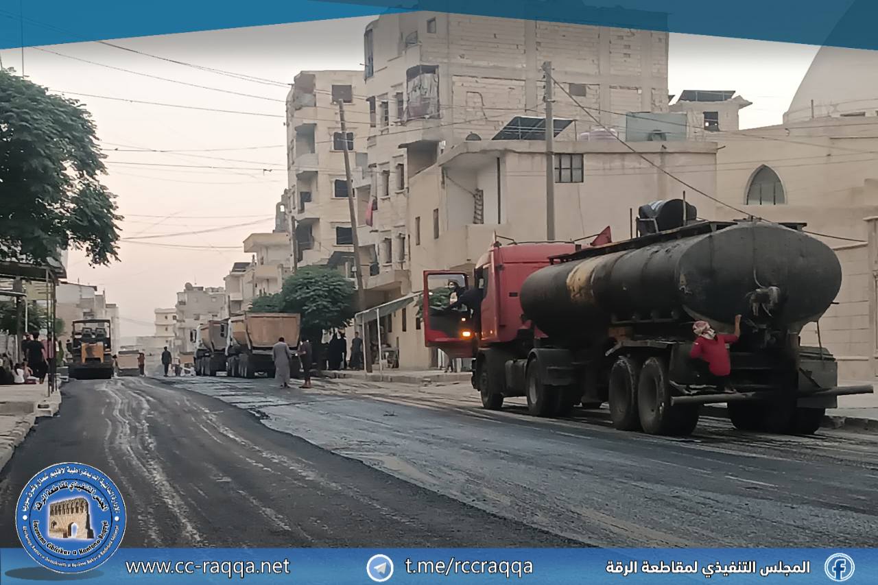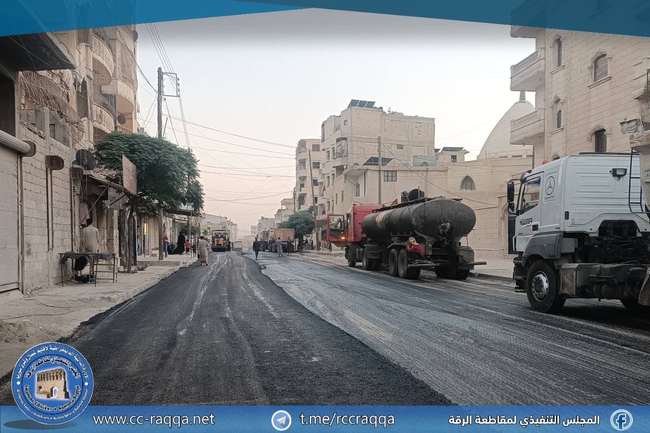 في إطار خطتها السنوية لتحسين البنية التحتية، تواصل بلدية الشعب في الرقة أعمال تعبيد الطرق، حيث شملت الأعمال مساء اليوم 12 تموز ، الشارع المحاذي لمسجد الشمطي قرب الحديقة البيضة، بهدف تسهيل حركة المرور وتعزيز واقع الخدمات في المدينة.