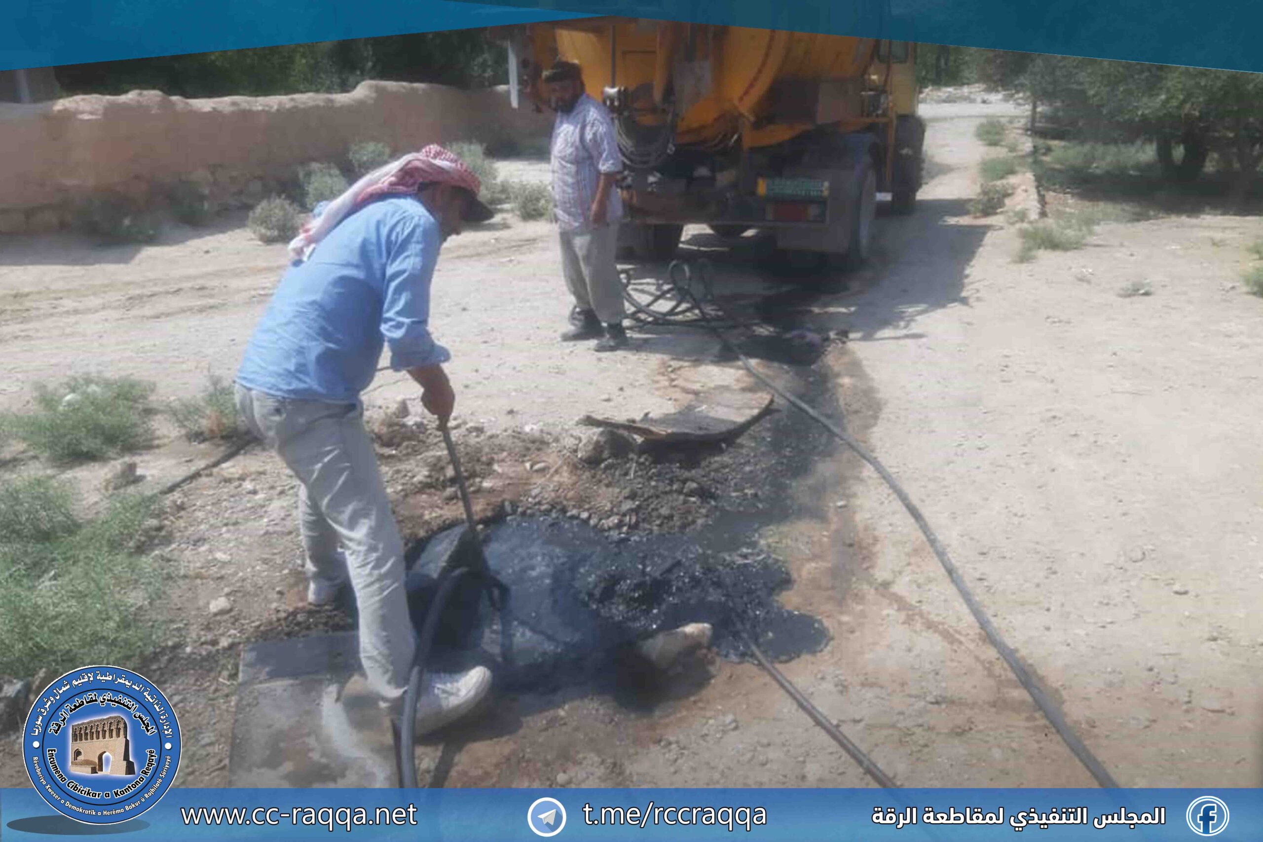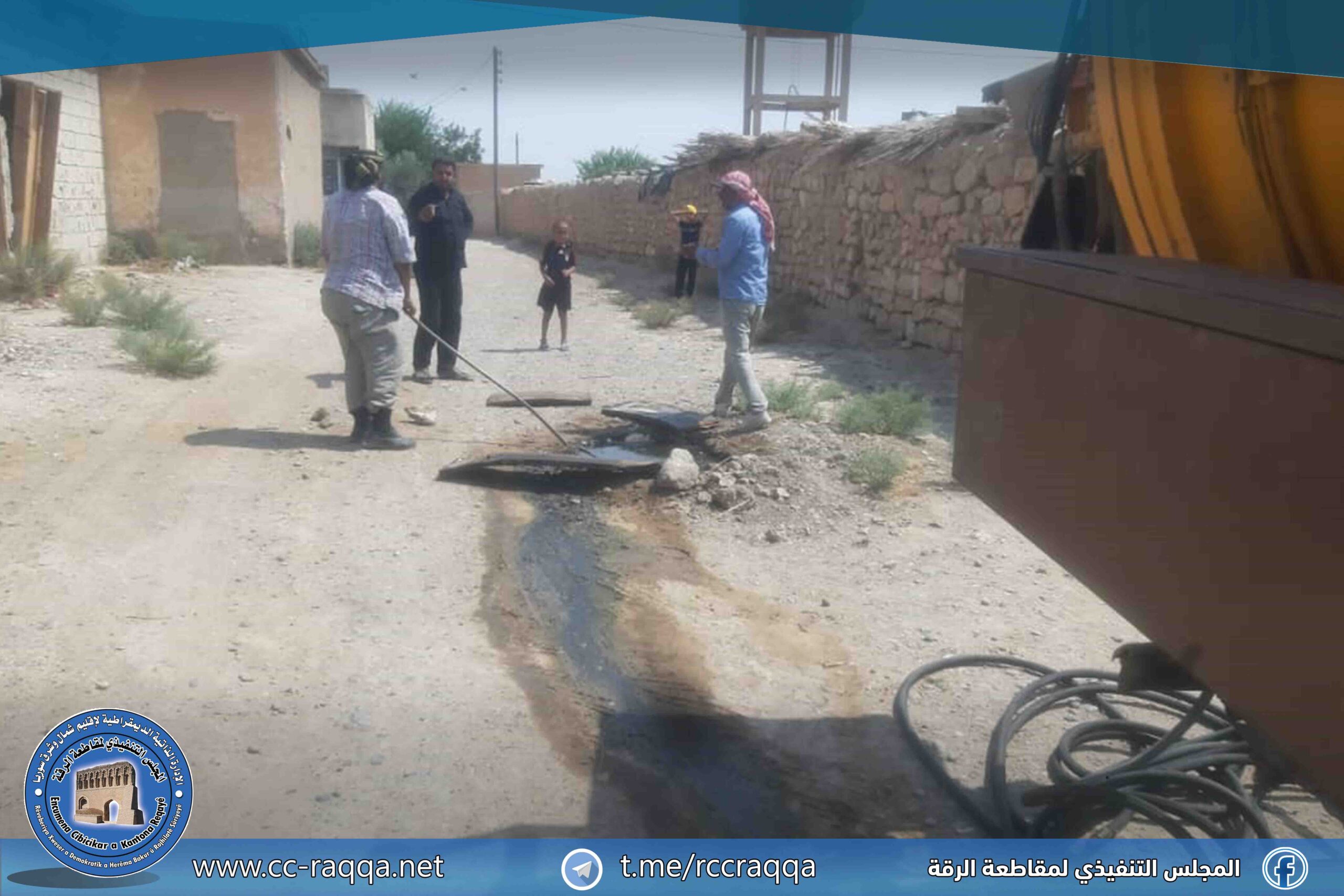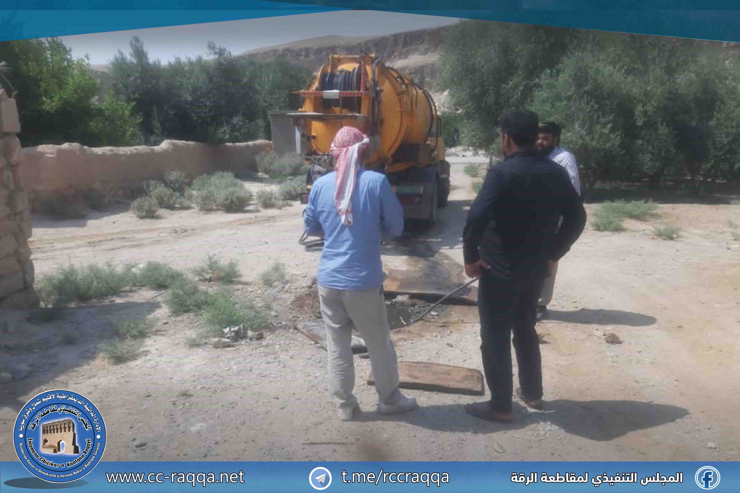 بلدية الشعب بالرقة تواصل دعم بلدية العكيرشي بخدمات الصرف الصحي