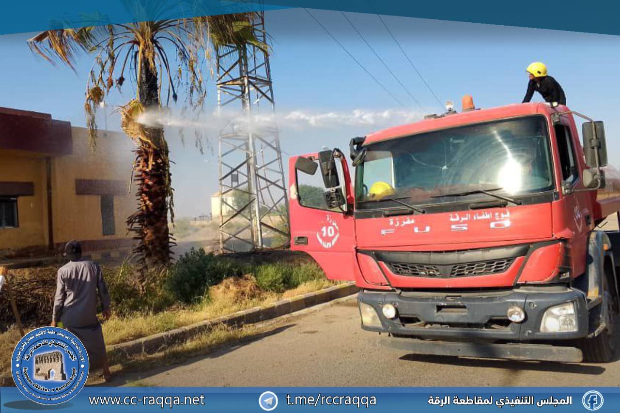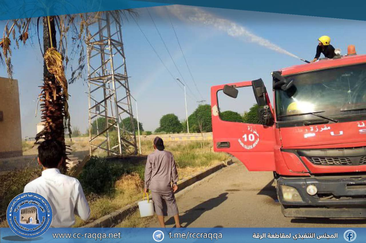 تلقى فريق الاستجابة الأولية في الرقة بلاغاً عن اندلاع حريق في مضخة مياه طاوي رمان، وذلك في تمام الساعة الخامسة من عصر اليوم الموافق 22 تموز.
