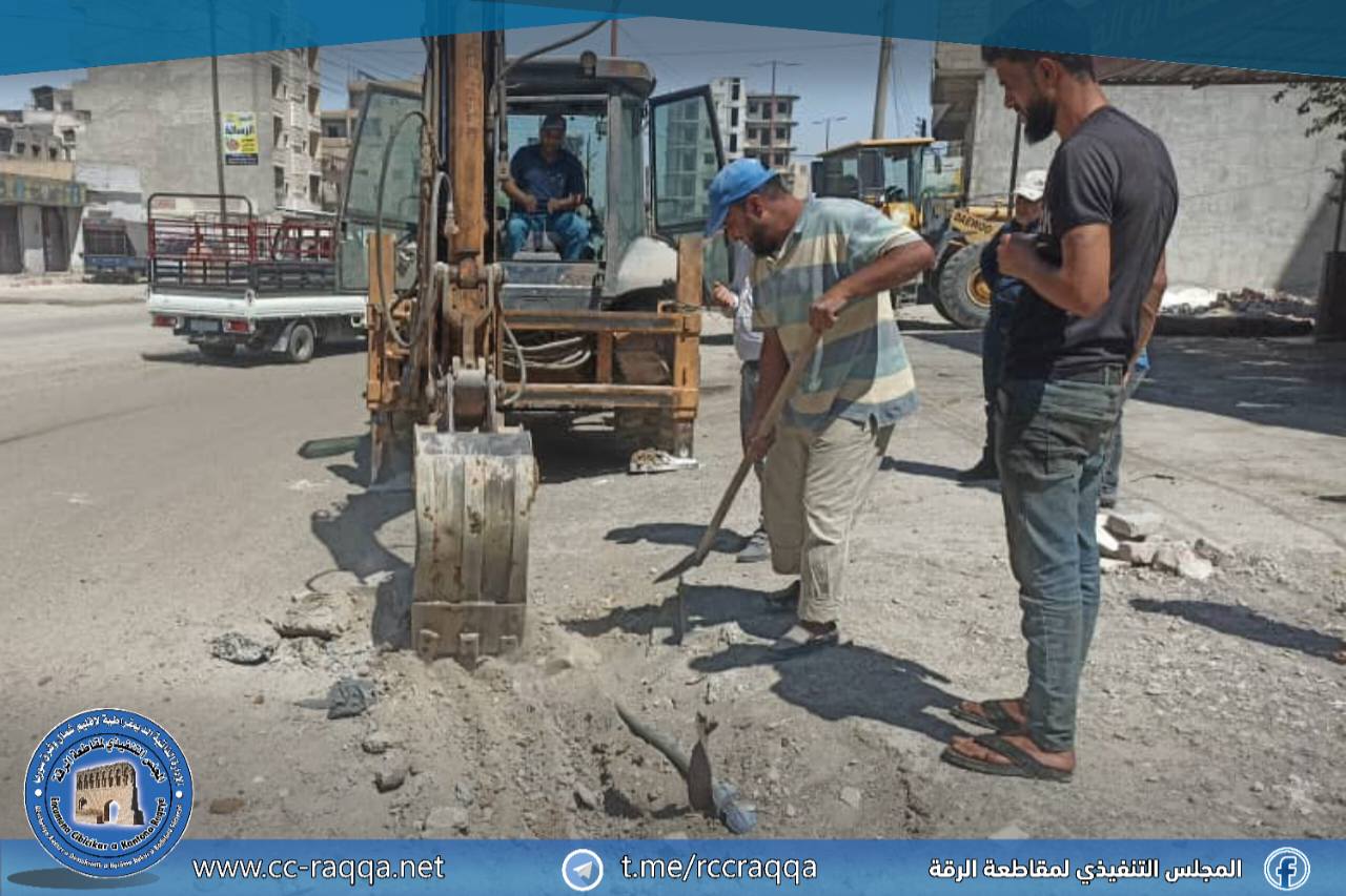 تواصل دائرة المياه في مدينة الرقة جهودها في الاستجابة السريعة لشكاوى الأهالي، حيث باشرت ورشات الصيانة التابعة لها أعمال إصلاح أعطال في شبكة المياه بمنطقة الفردوس، غربي نادي الشباب.