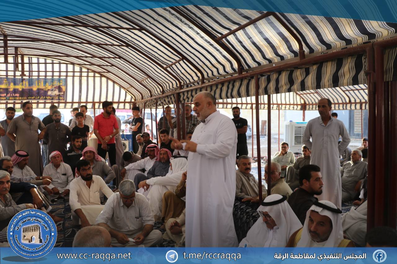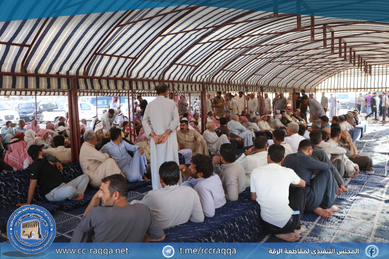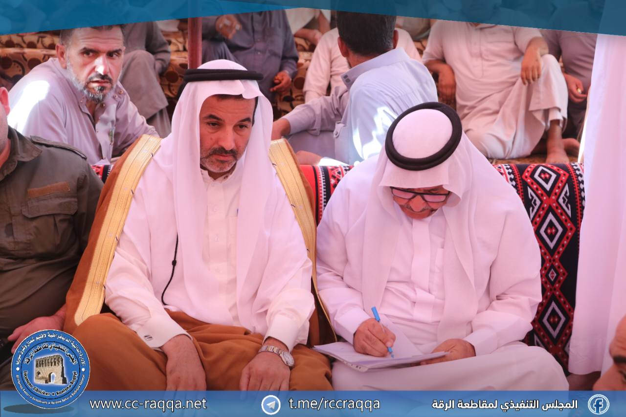 شهدت مدينة الرقة اليوم 15 آب، إتمام صلحين عشائريين بحضور وجهاء وشيوخ العشائر وقوى الأمن الداخلي ومجلس الأعيان ومجلس الشعوب، بهدف إنهاء الخلافات العشائرية وتعزيز السلم الأهلي.