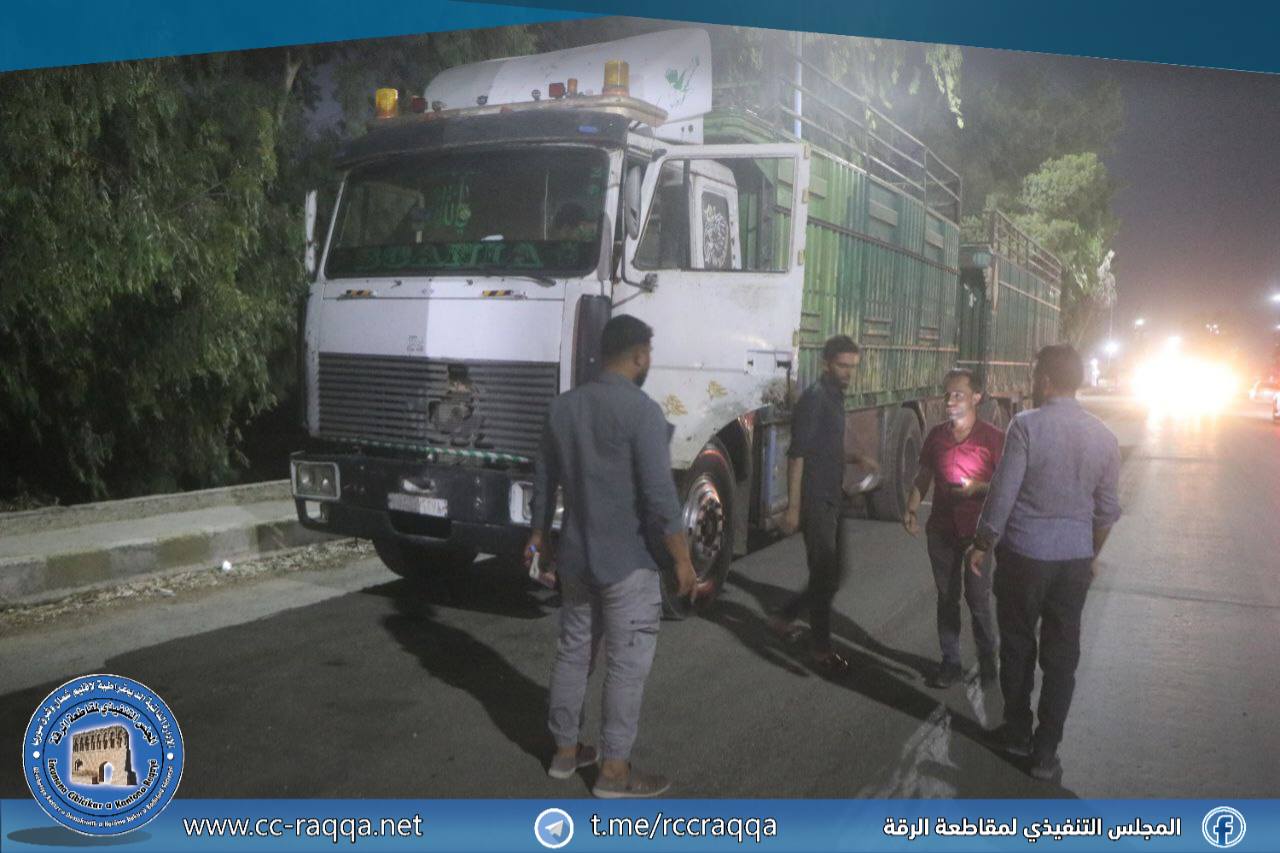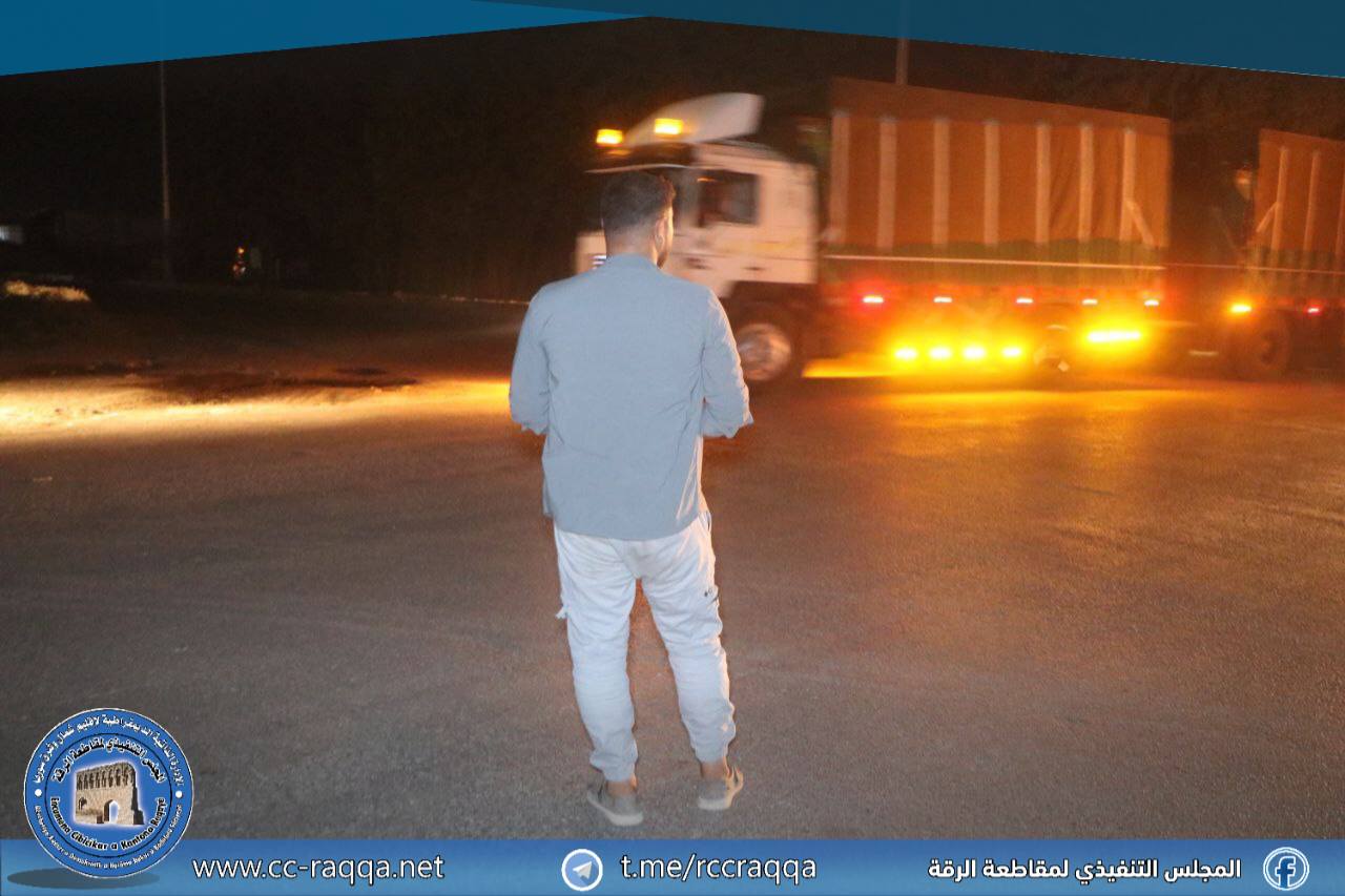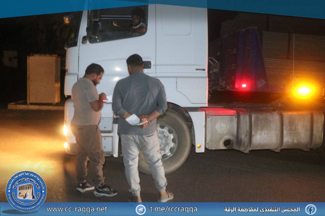 تواصل ضابطة النقل البري في الرقة اليوم 17 آب جولاتها المسائية، للتأكد من التزام السائقين بالحمولات المقررة ومنع دخول الآليات الثقيلة إلى المدينة، وذلك في إطار الجهود الرامية إلى تنظيم حركة المرور والحفاظ على السلامة العامة.