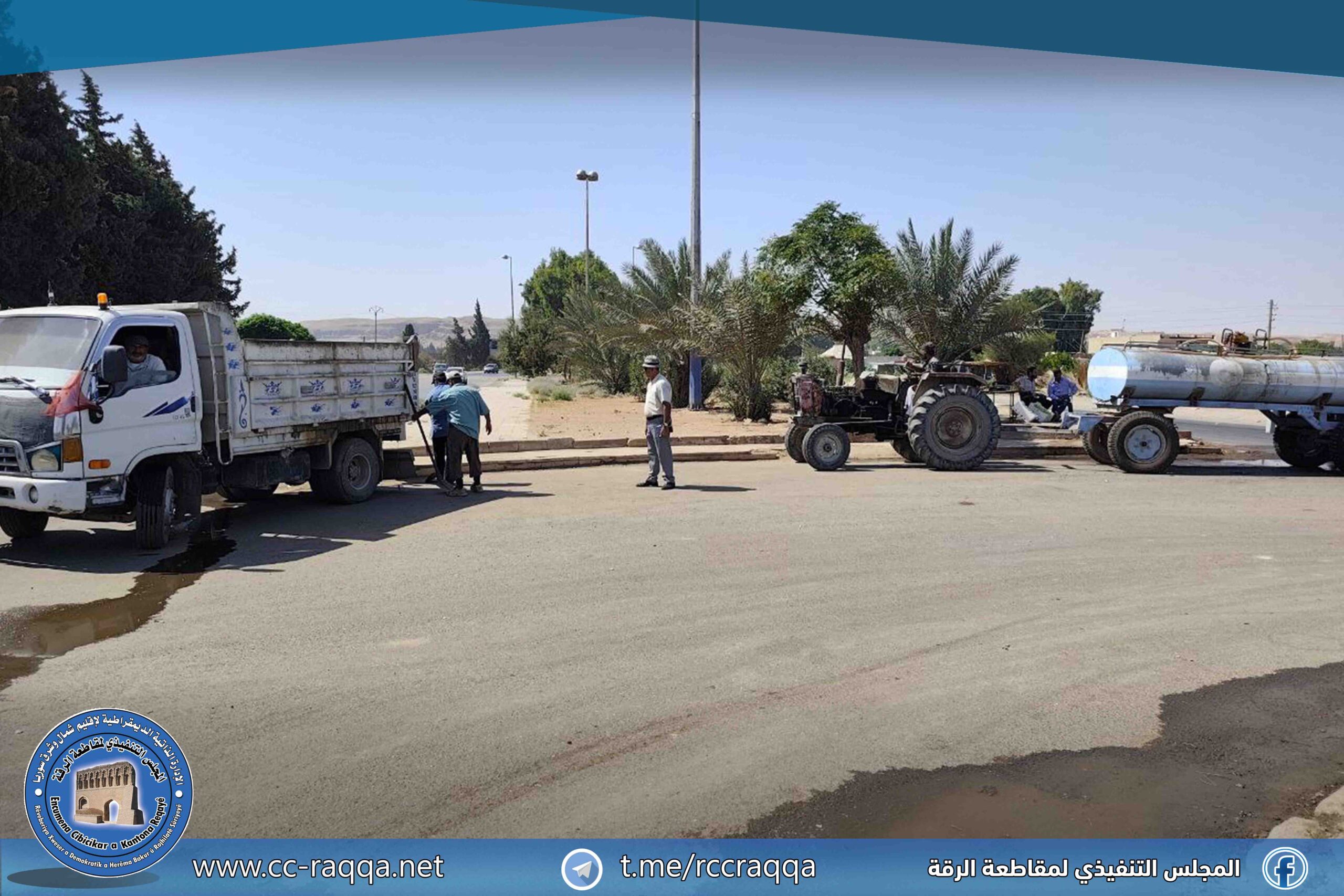 في إطار الجهود اليومية المبذولة للحفاظ على نظافة وجمالية الطرقات العامة، نفذت بلدية الشعب في الكسرات التابعة لاتحاد البلديات في مقاطعة الرقة صباح اليوم 18 آب، حملة خدمية شملت سقاية الأشجار المزروعة على الأرصفة وتنظيف الأتربة المتراكمة على جانبي الطرقات.