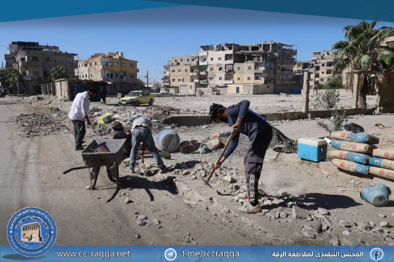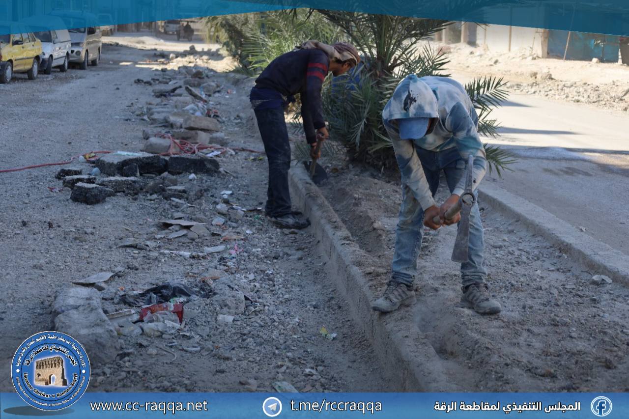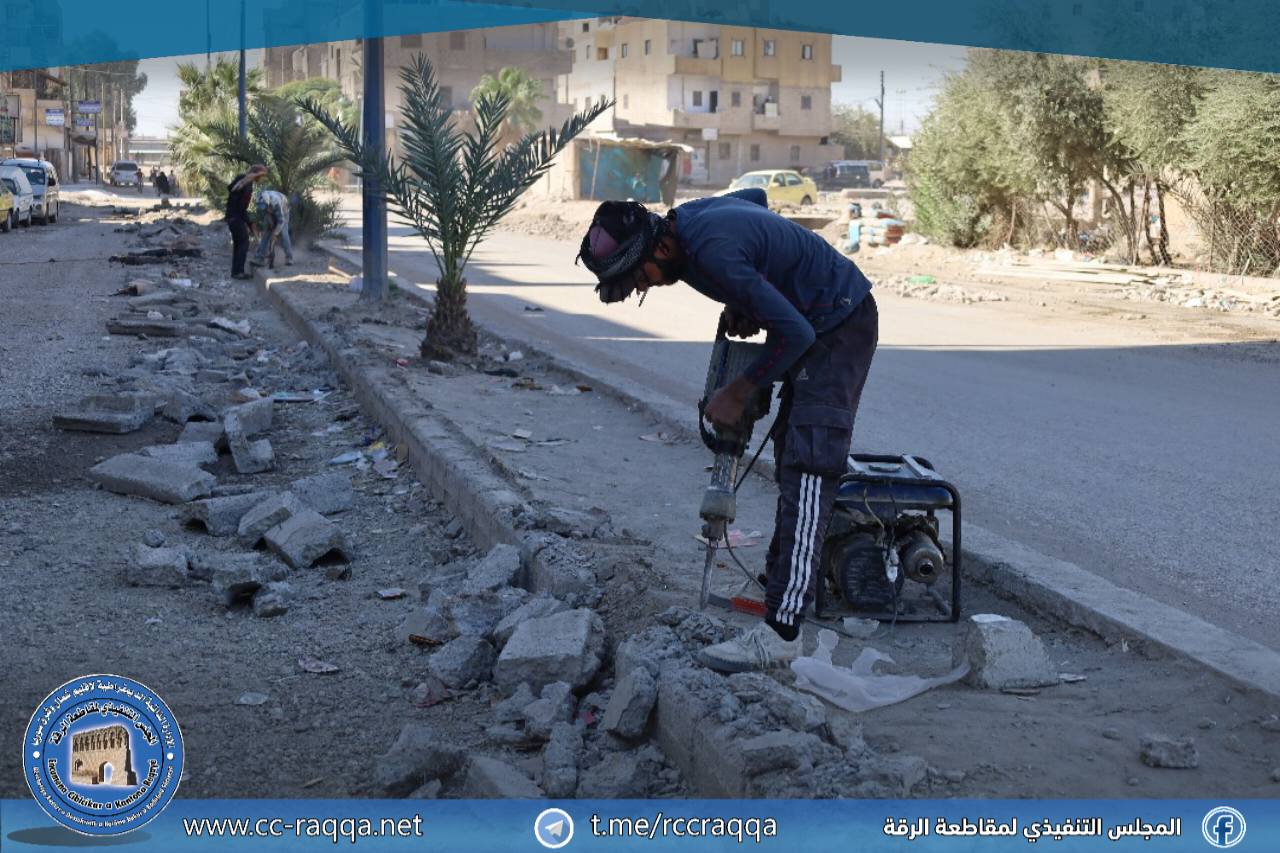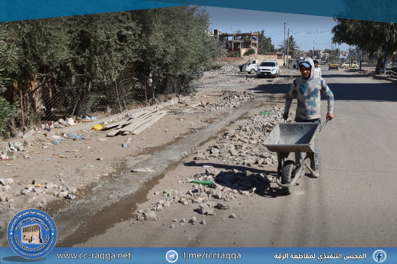 تواصل بلدية الشعب في مدينة الرقة تنفيذ أعمال خدمية ضمن الطريق الممتد من دوار الادخار وحتى مفرق الجزرة، وذلك بهدف تحسين البنية التحتية وتسهيل حركة السير.