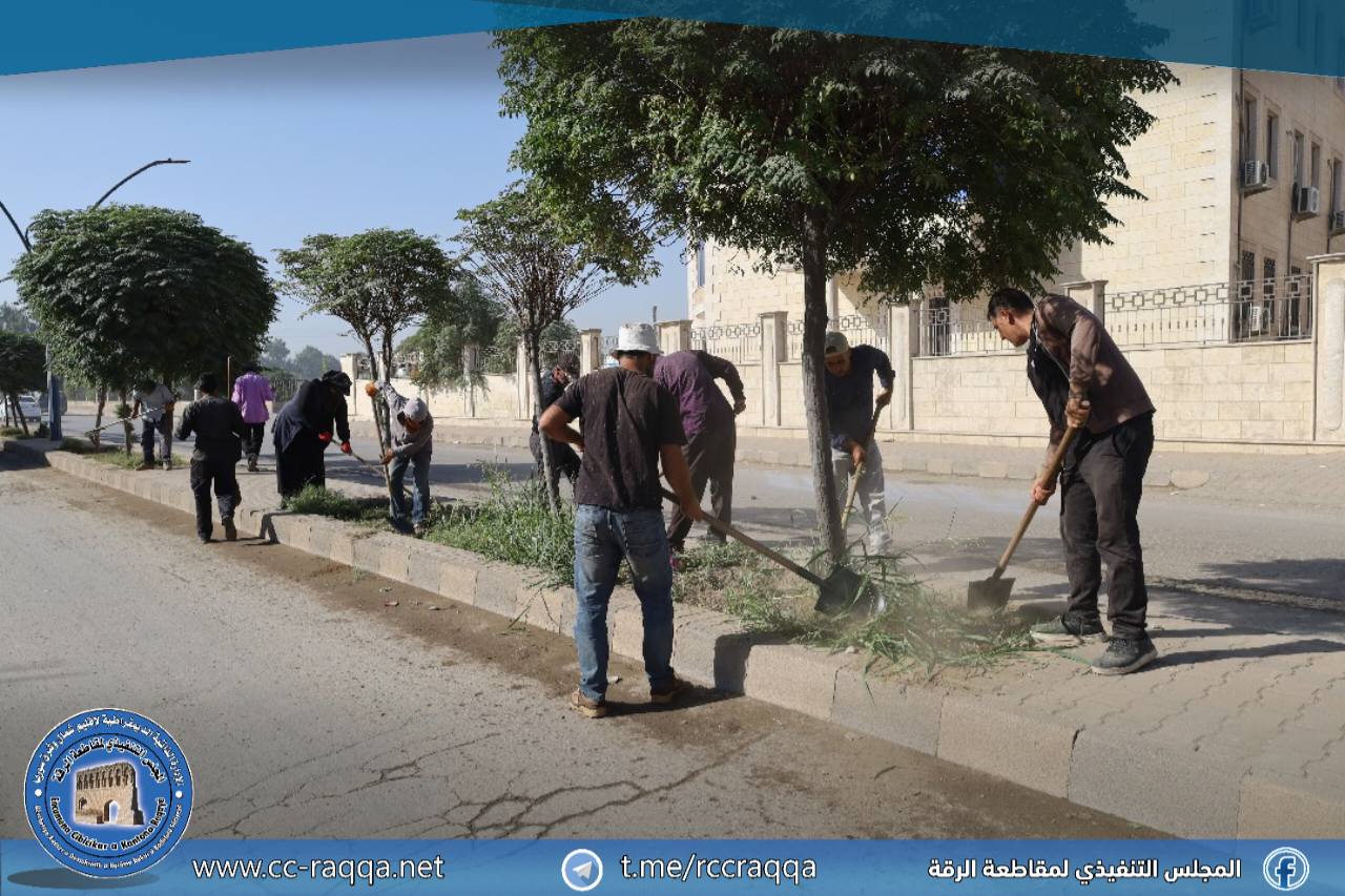 تواصل ورشات دائرة الحدائق والتشجير تنفيذ أعمال خدمية ضمن شارع الكراج الجنوبي، الممتد من فريق الاستجابة الأولية وصولاً إلى الجسر القديم.