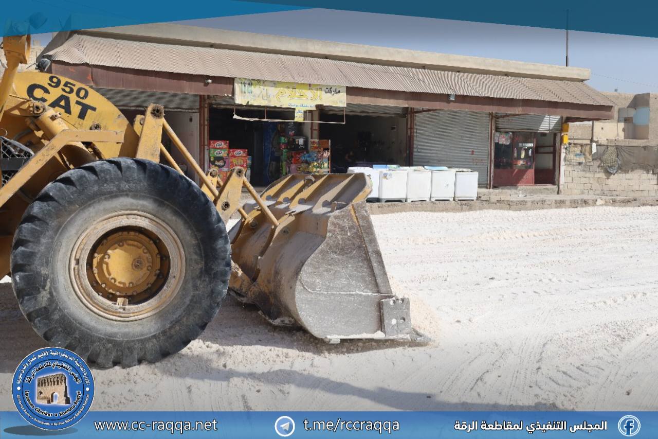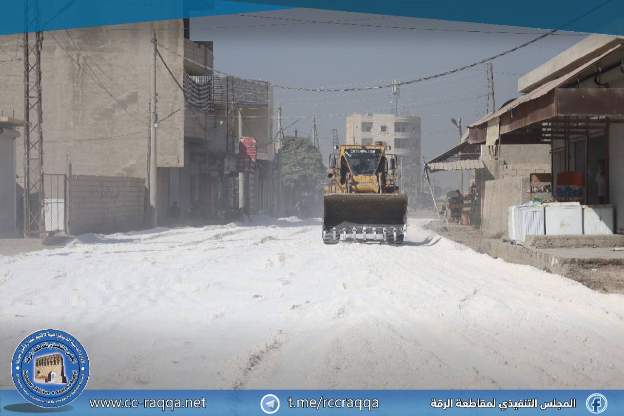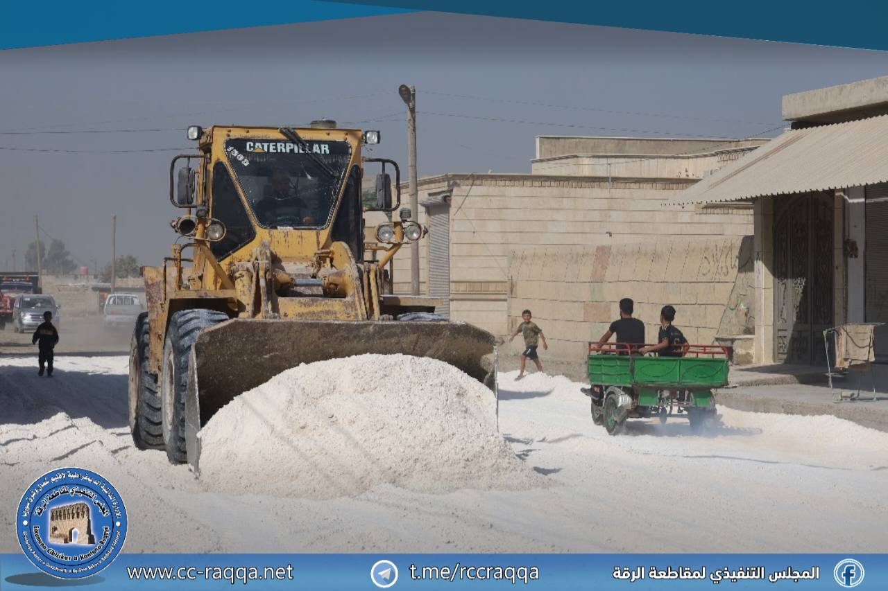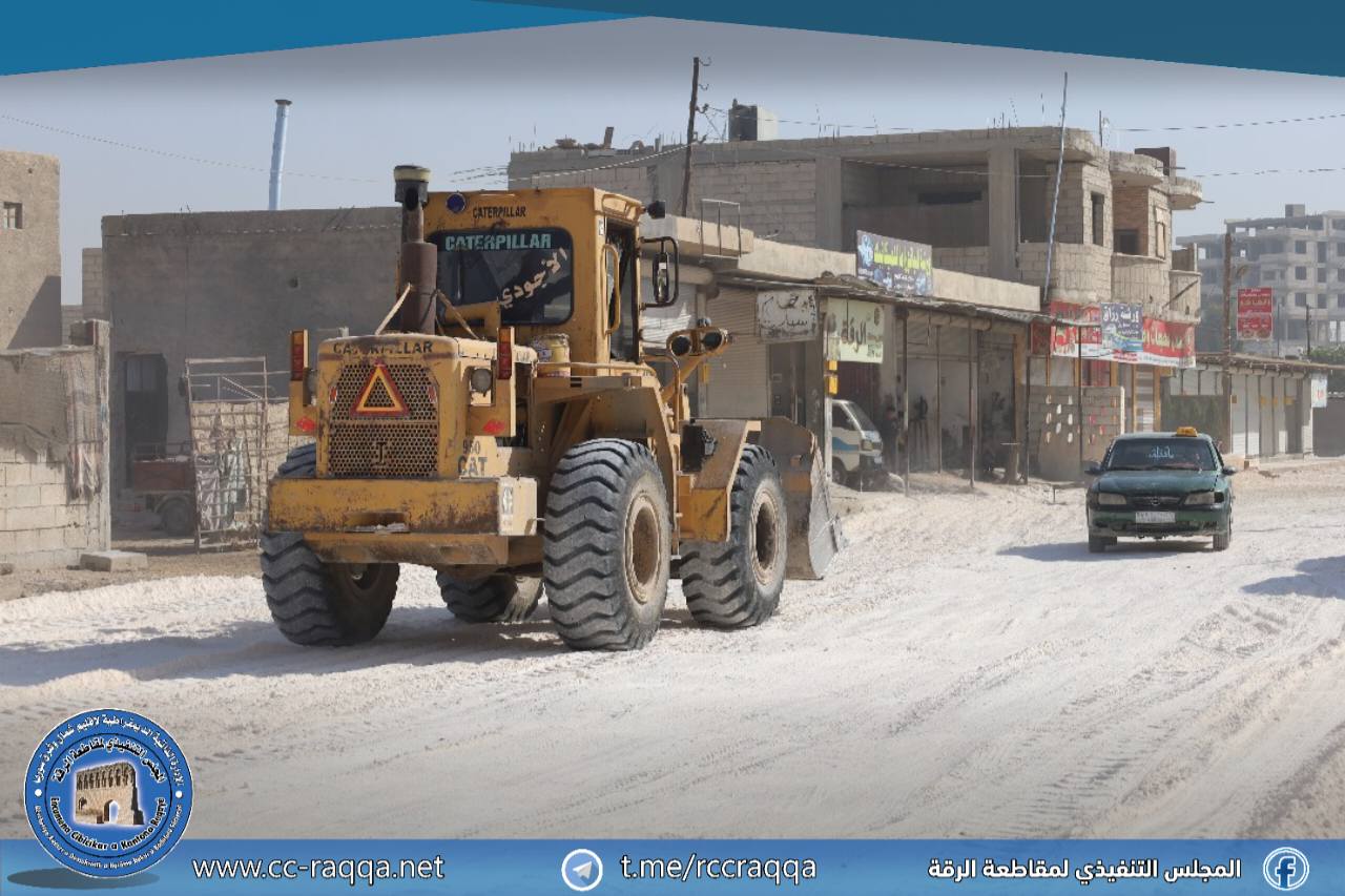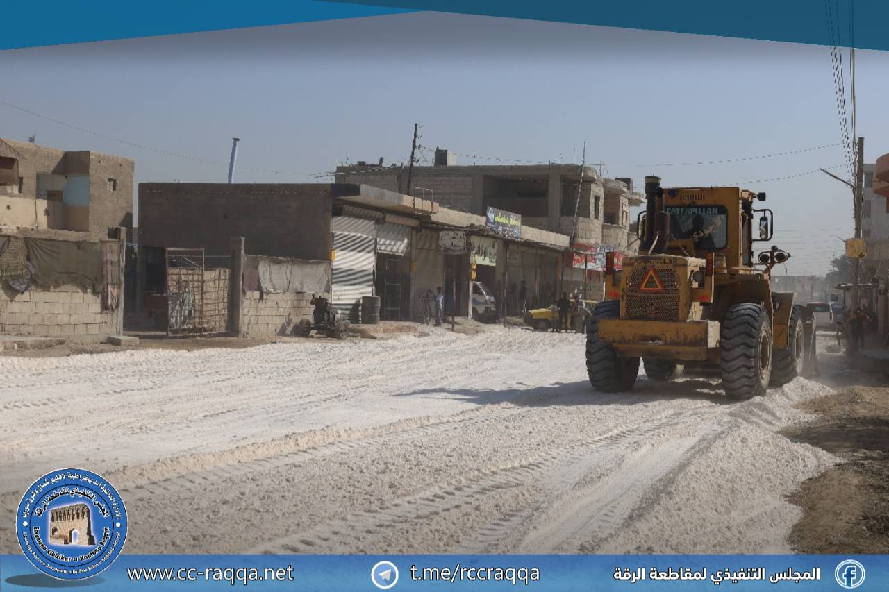 تعمل الورشات الفنية التابعة لبلدية الشعب في الرقة على تنزيل ومدّ الكرابية في الشارع الرئيسي بحي الطيار، وذلك ضمن خطة البلدية الرامية إلى تجهيز الشارع لتعبيده بمادة الأسفلت خلال الأيام القليلة القادمة.
