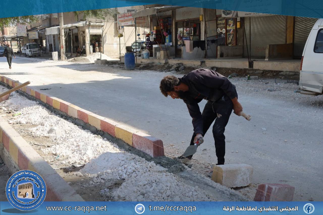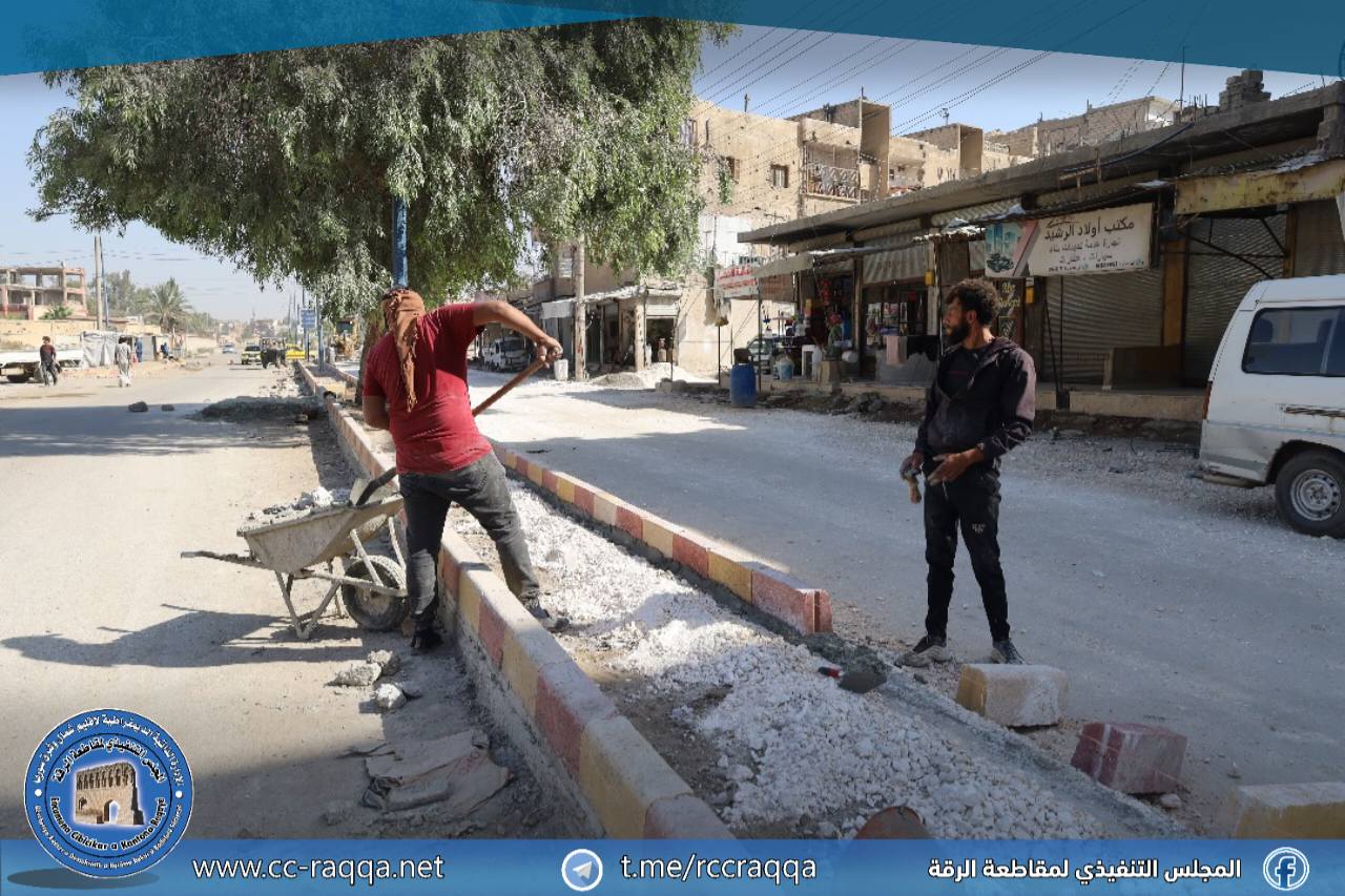 تعمل الورش التابعة لبلدية الشعب في الرقة صباح اليوم 4 تشرين الأول، على إنجاز مجموعة من الأعمال الخدمية في الشارع الممتد من دوار الادخار حتى مفرق الجزرة، وذلك ضمن خطة تطوير وتأهيل الطرقات الرئيسية في المدينة.