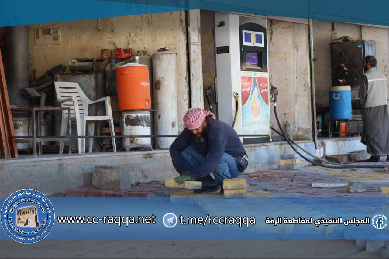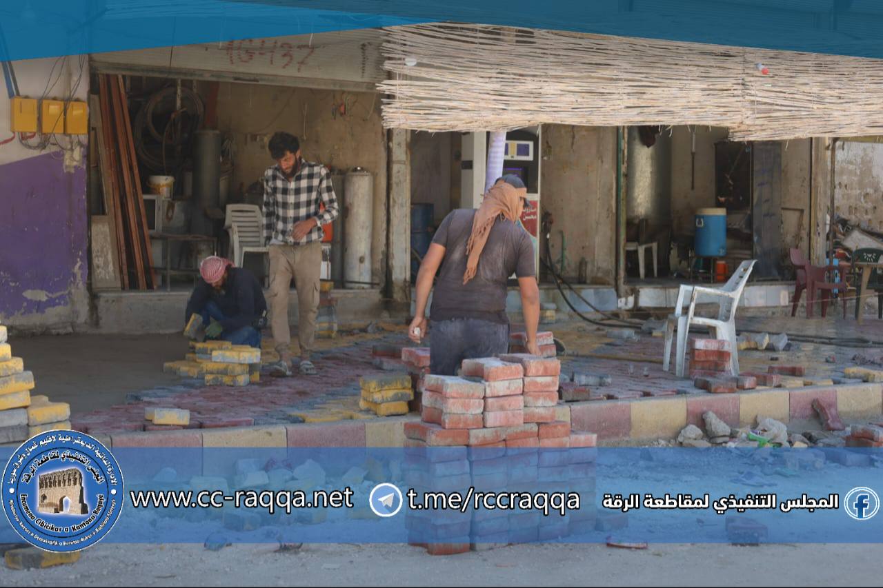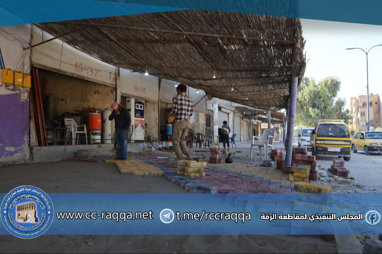 وسيتم فرش طبقة من الرمل فوق البلاط ومن ثم دحله بعد الانتهاء من التركيب، لإضفاء مظهر جمالي وتنظيمي على الحي وتسهيل حركة الأهالي.