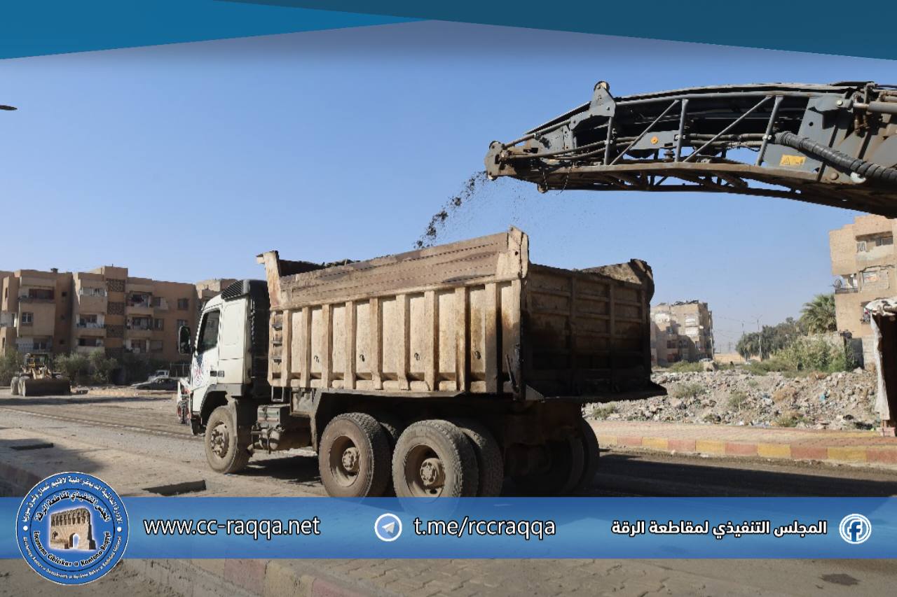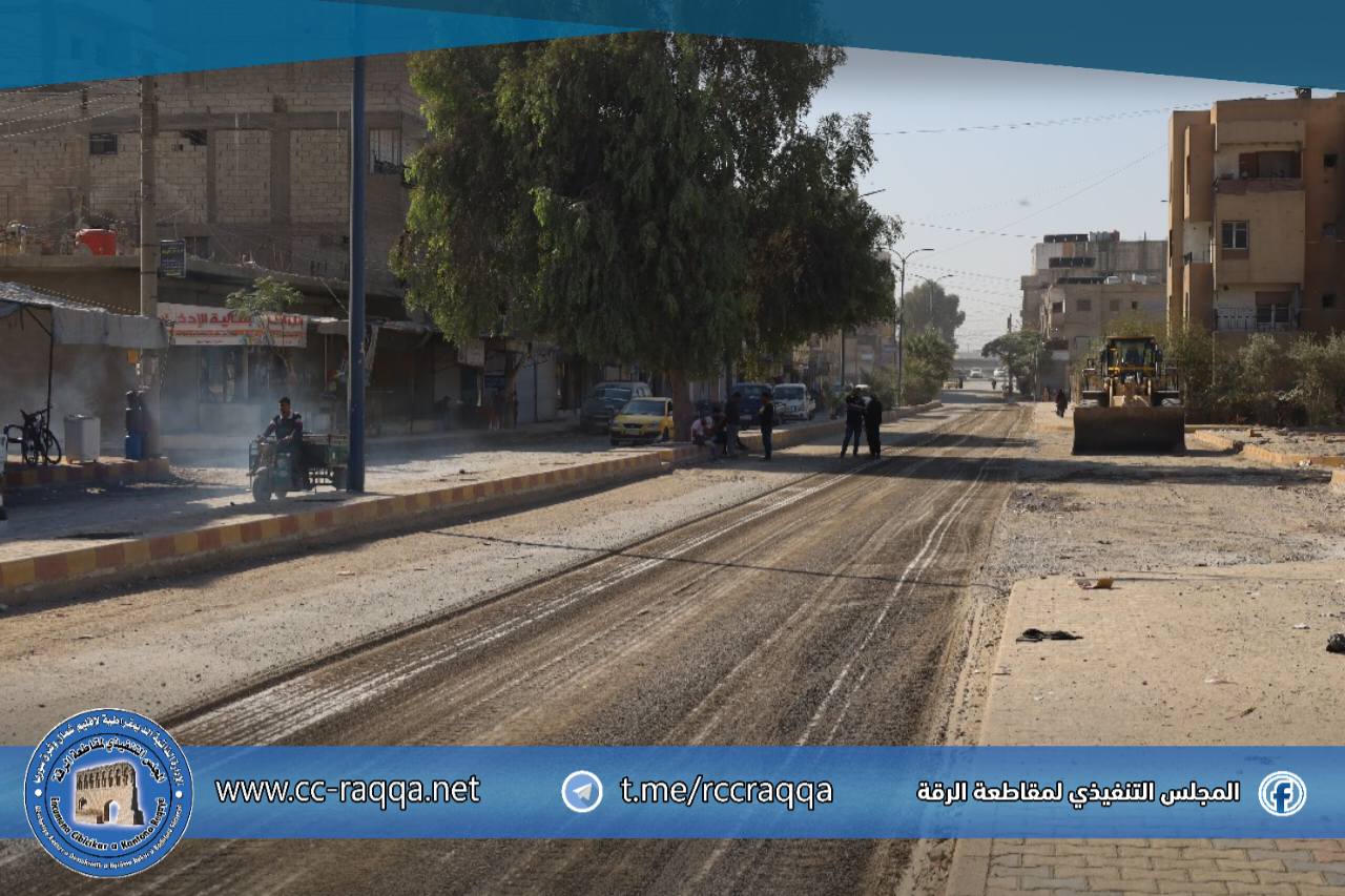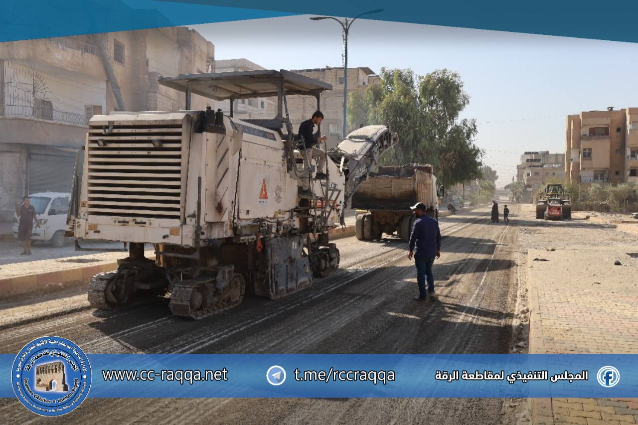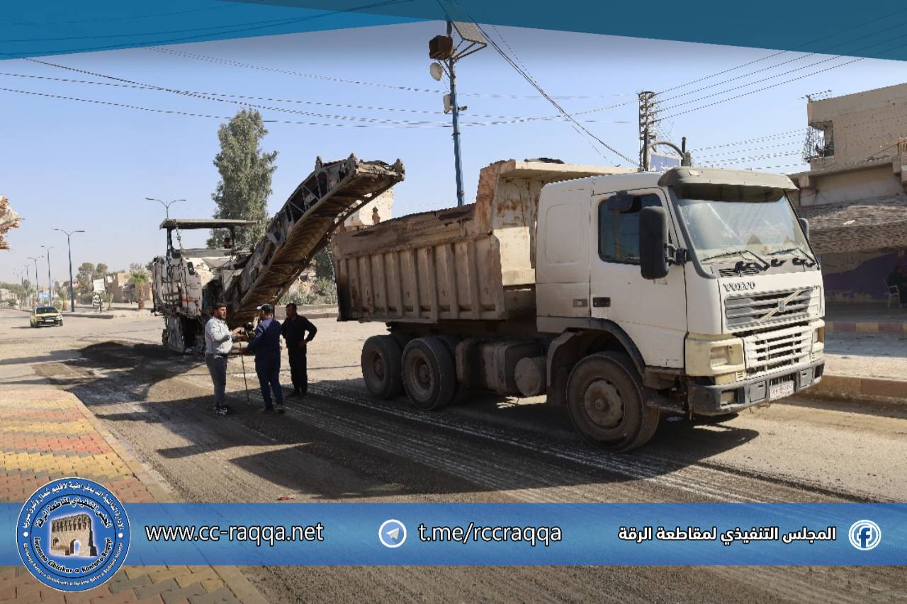 بعد الانتهاء من تجهيز المنصف وجانبي الطريق، باشرت بلدية الشعب بالرقة صباح اليوم 18 تشرين الأول، أعمال قشط الطبقة الإسفلتية للطرف الغربي من دوار الادخار باتجاه مفرق الجزرة، وذلك ضمن خطة البلدية الرامية إلى صيانة وتحسين شبكات الطرق الرئيسية في المدينة.