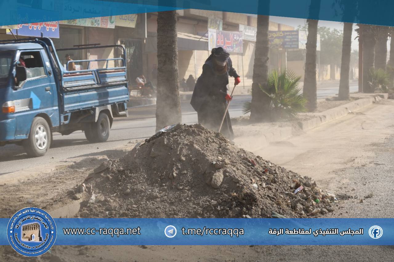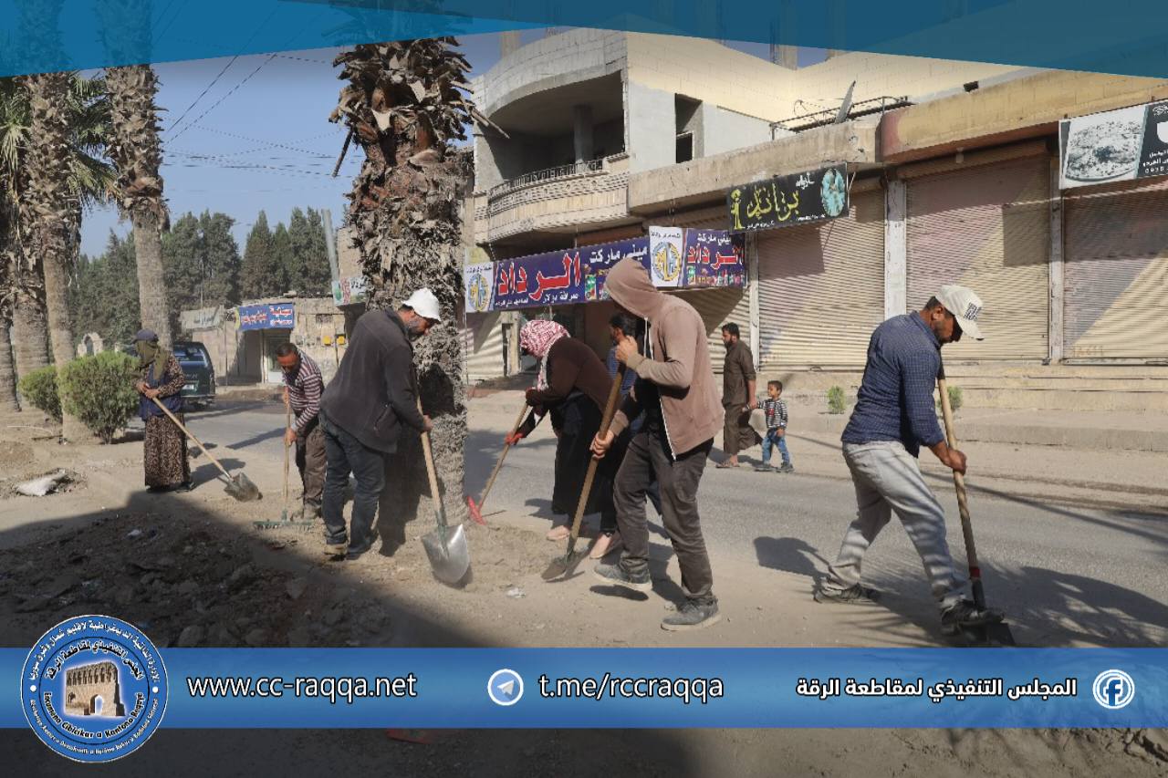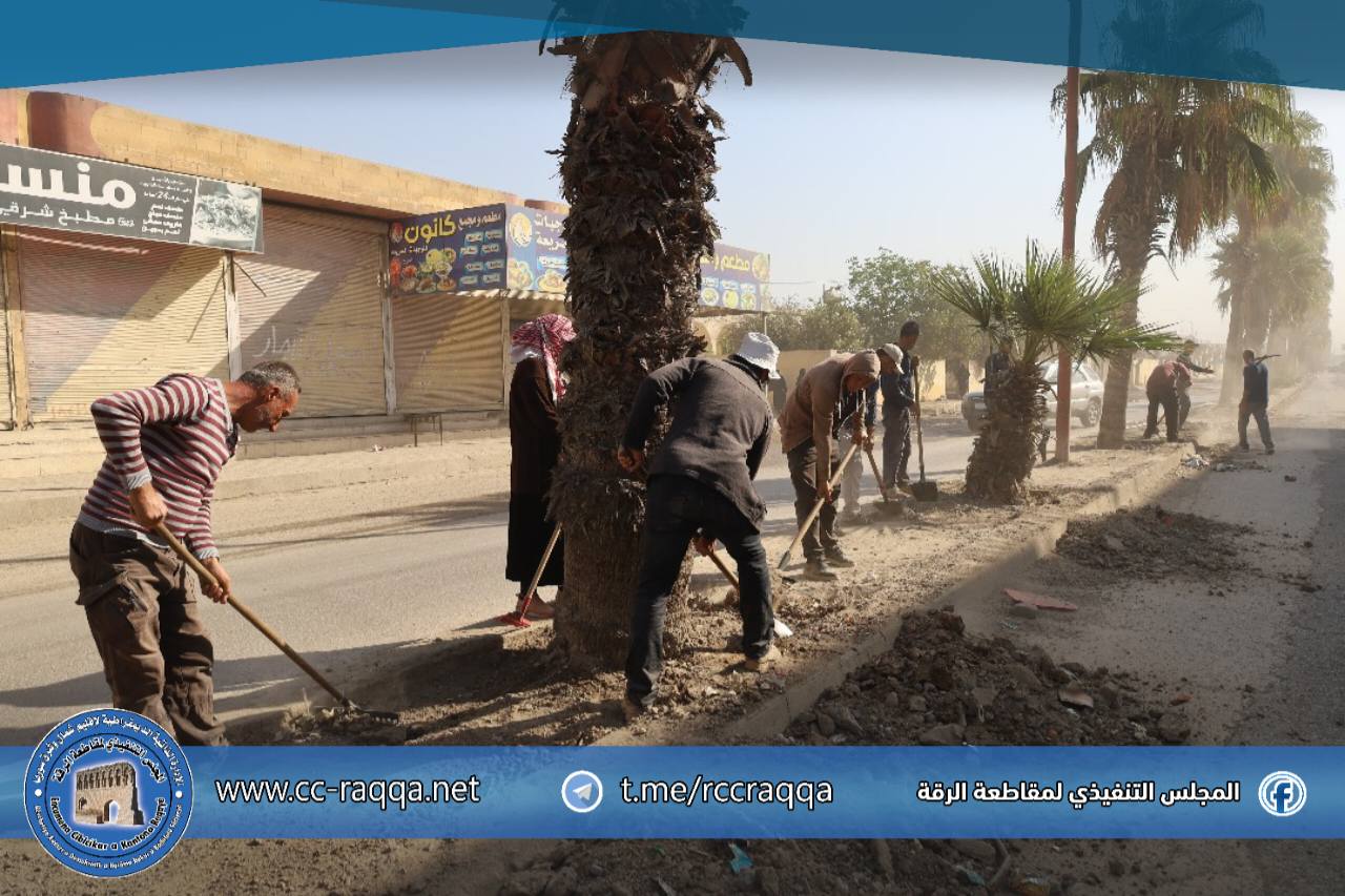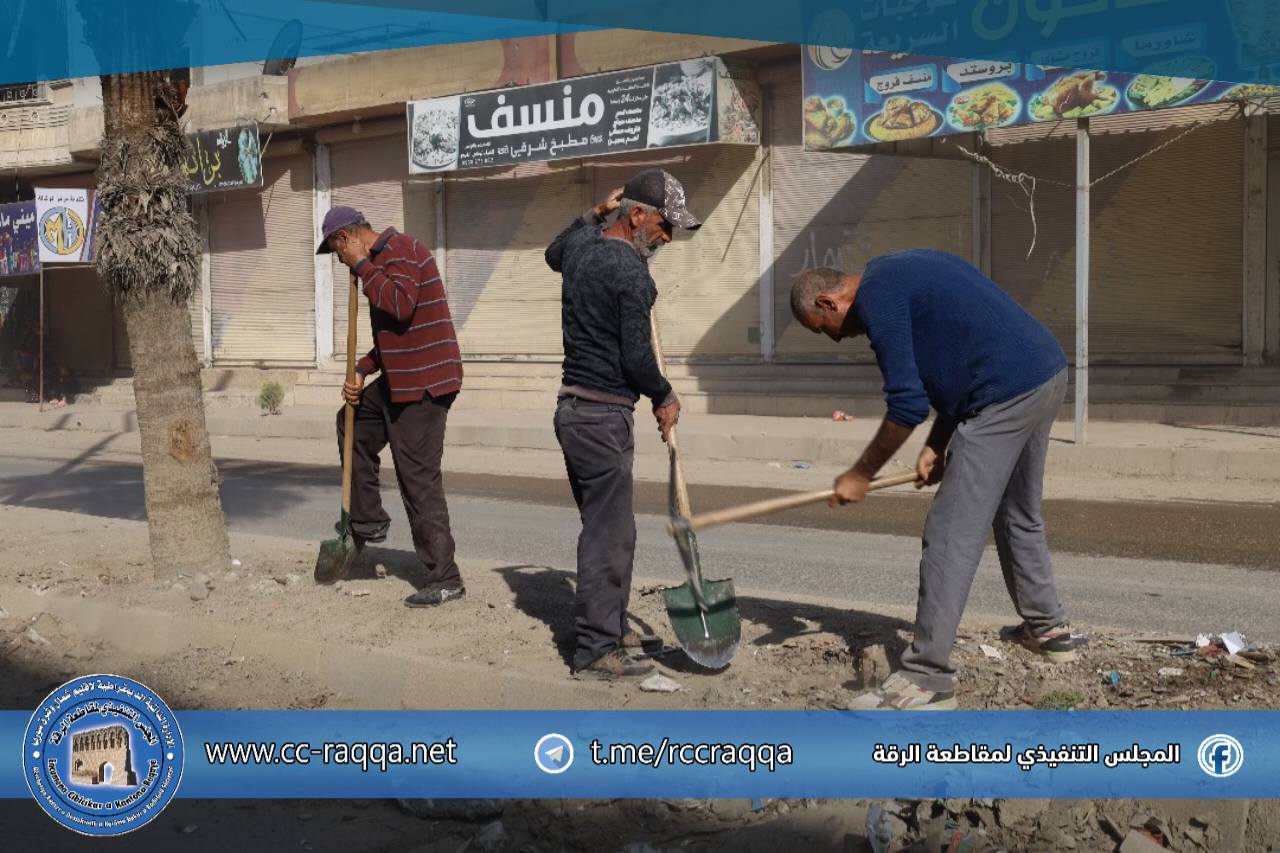تواصل الورش التابعة لدائرة الحدائق والتشجير في بلدية الشعب بالرقة تنفيذ عدد من الأعمال الخدمية والتجميلية في مختلف أحياء المدينة، حيث باشرت صباح اليوم 18 تشرين الأول، أعمالها ضمن المنصف الوسطي لطريق المشلب الرئيسي.