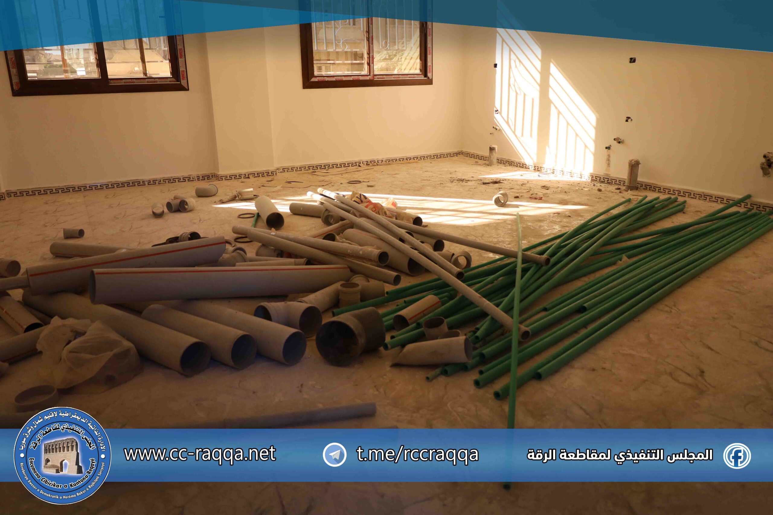 يواصل المجلس التنفيذي في مقاطعة الرقة أعماله في مشروع إعادة تأهيل قصر الضيافة، وذلك في إطار الخطة الشاملة لتطوير المباني العامة والخدمية في المدينة.