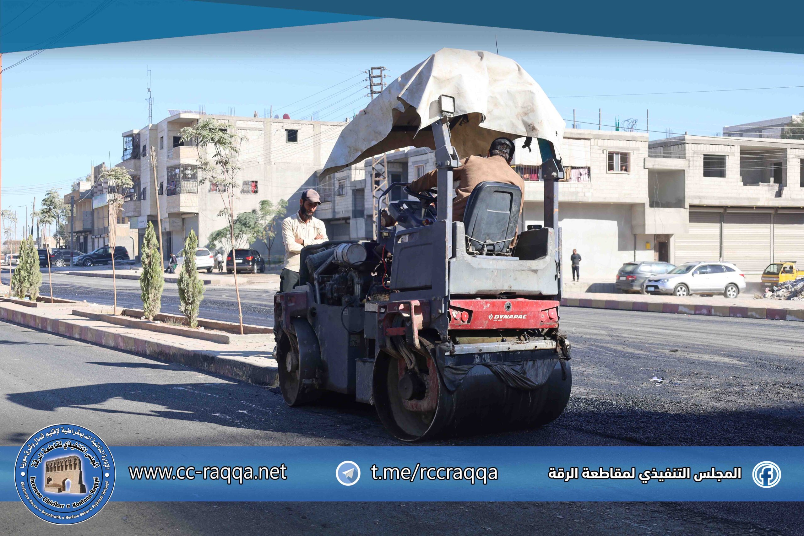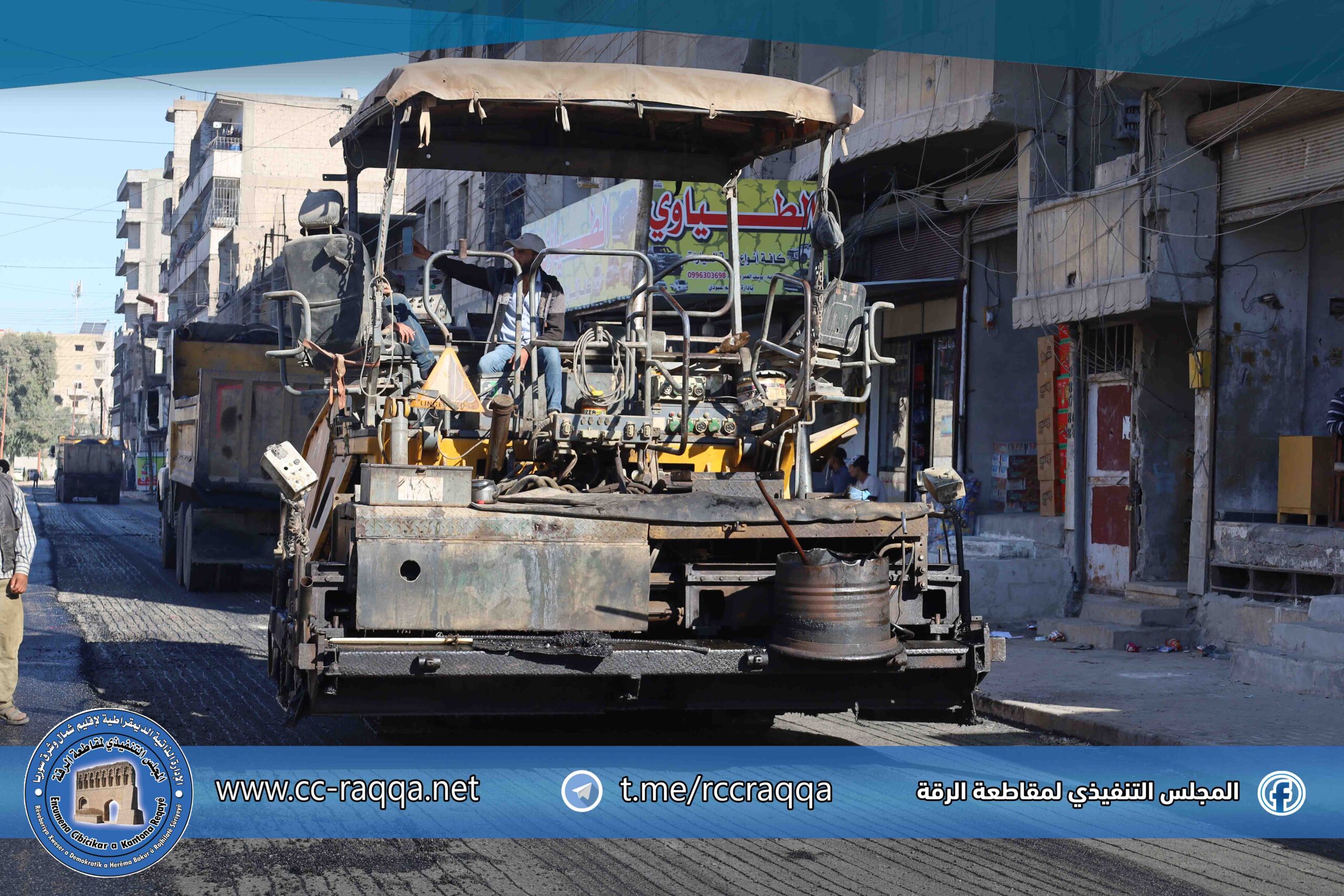 تواصل الورشات الفنية التابعة لبلدية الشعب في الرقة، أعمالها في استكمال مشروع تعبيد شارع المياه الشرقي، ضمن خطة تحسين البنية التحتية وتسهيل حركة المرور في المنطقة.