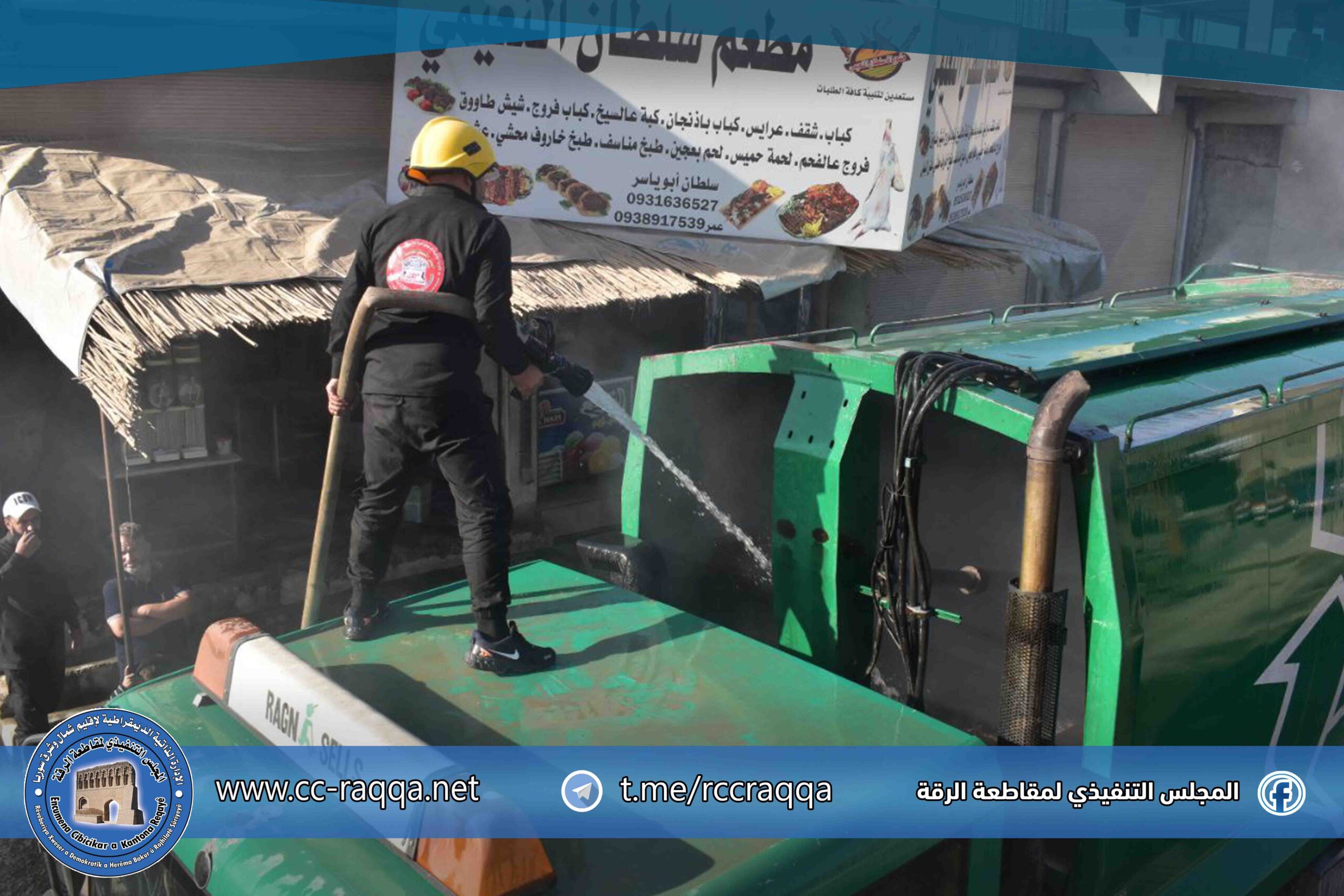 تمكّن فريق الاستجابة الأولية في مدينة الرقة صباح اليوم ٢ تشرين الثاني، من إخماد حريق اندلع في سيارة نظافة تابعة لبلدية الشعب في الرقة، وذلك في حي المشلب بالقرب من المستوصف.