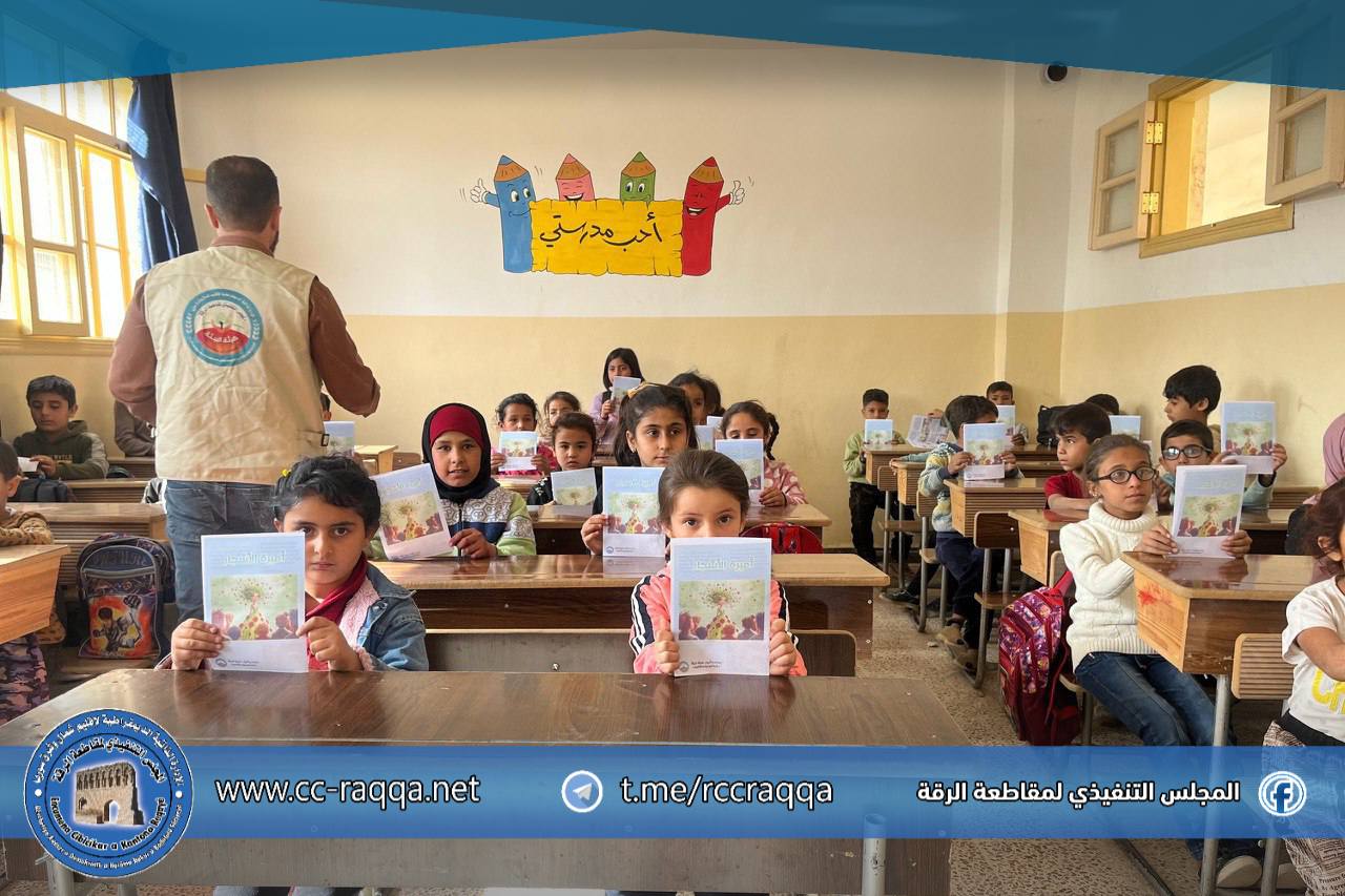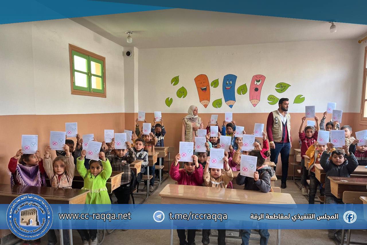 ولغرس الفكرة بشكل بصري ممتع، قام الطلاب بمساعدة الكادر التعليمي بلصق ملصقات توعوية على جدران المدرسة.