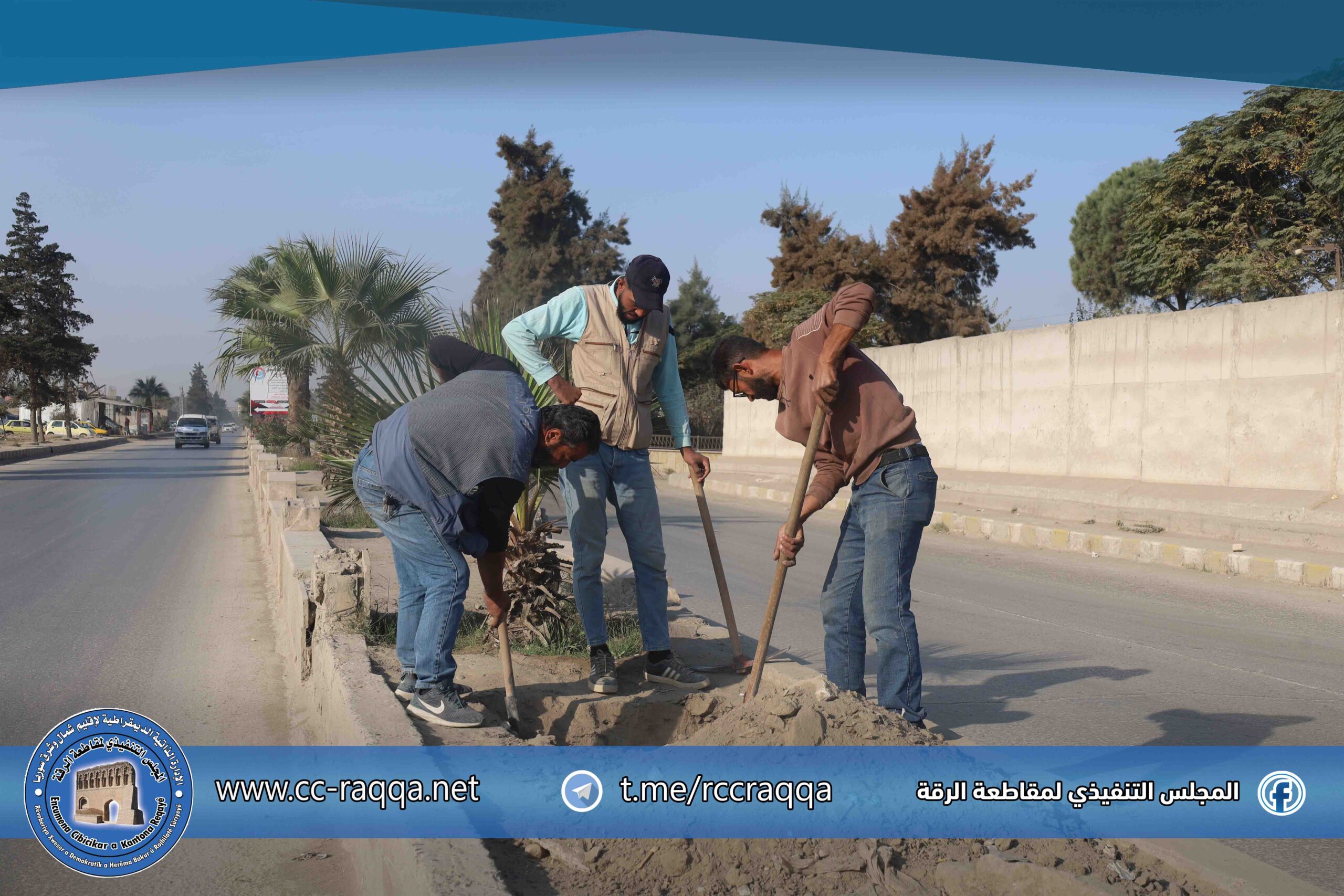 باشرت ورشات الإنارة في مدينة الرقة صباح اليوم 5 تشرين الثاني، أعمال الحفر لتجهيز مواقع تركيب أعمدة الإنارة على طريق حلب والممتد من شارع النور وصولاً إلى ساحة البانوراما، ضمن خطة تحسين شبكة الإنارة العامة في المدينة.