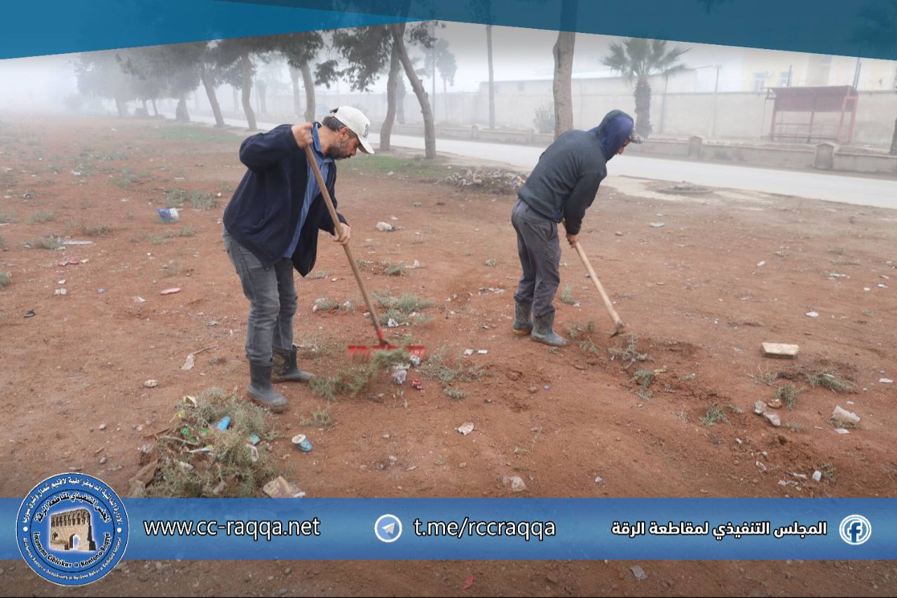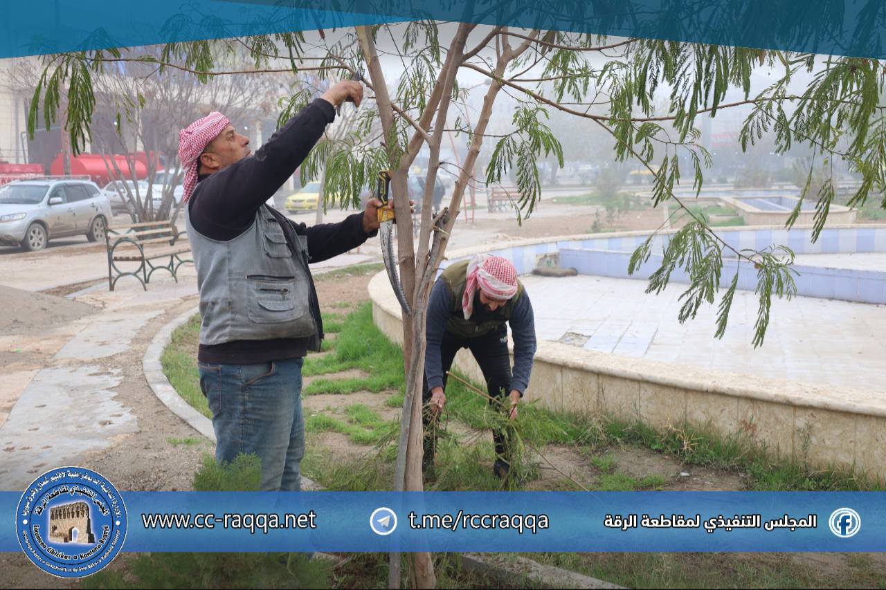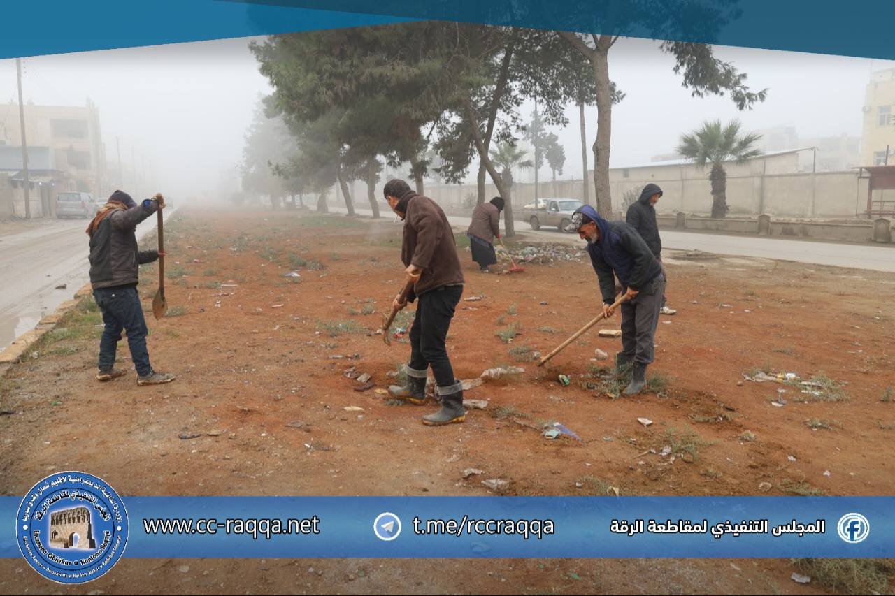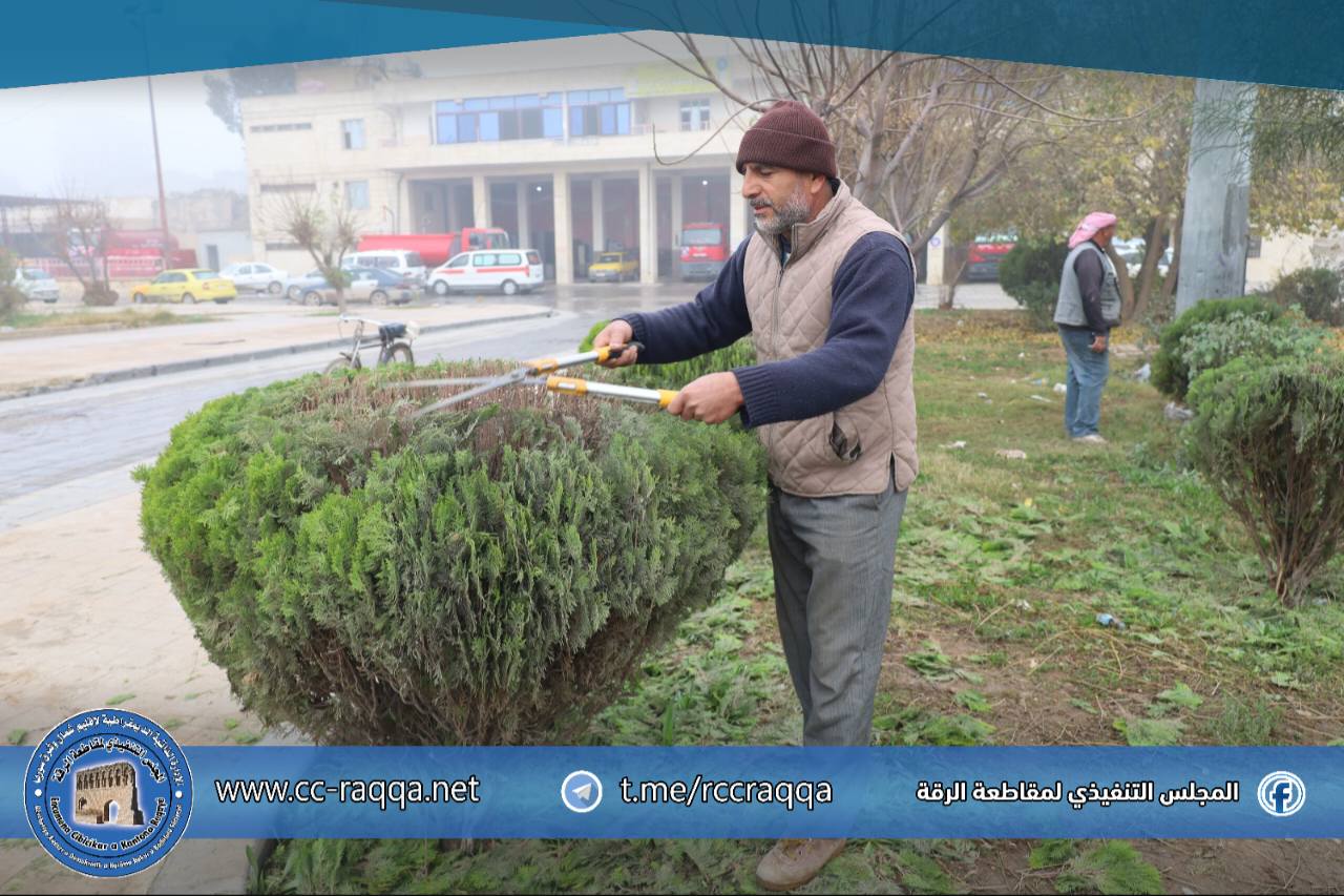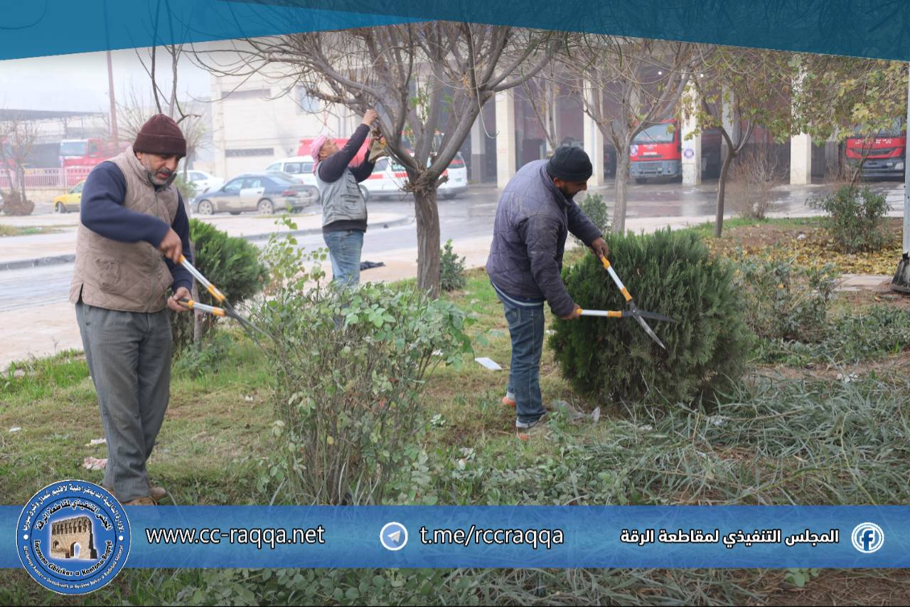 ضمن الجهود المستمرة لتحسين الواقع الخدمي والمظهري في المدينة، تواصل ورشات دائرة الحدائق والتشجير التابعة لبلدية الشعب في الرقة صباح اليوم 13 كانون الأول، تنفيذ حملة تنظيف واسعة ضمن طريق حلب، بالإضافة لقيام ورشة التقليم بالعمل على تقليم الأشجار ضمن ساحة المرأة الحرة بجانب الإطفائية.